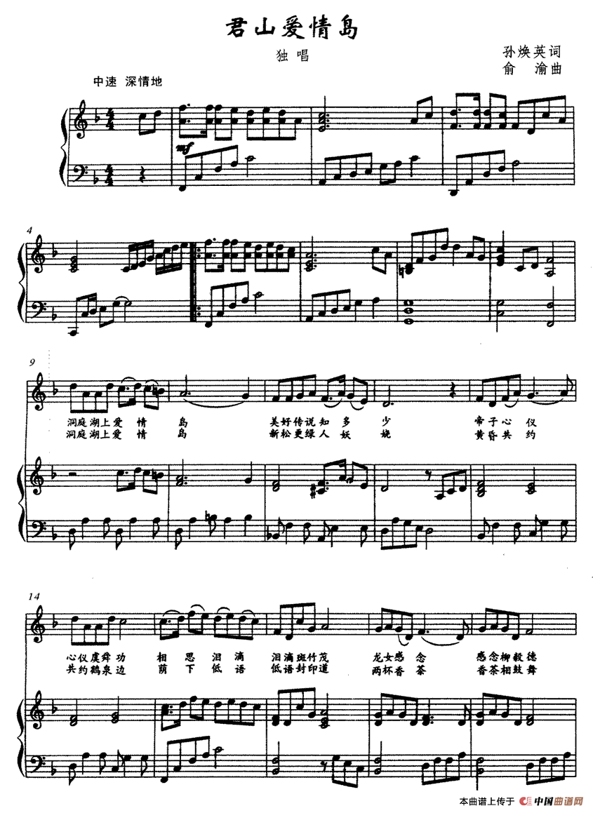 君山爱情岛(孙唤英词 俞渝曲)相关五线谱