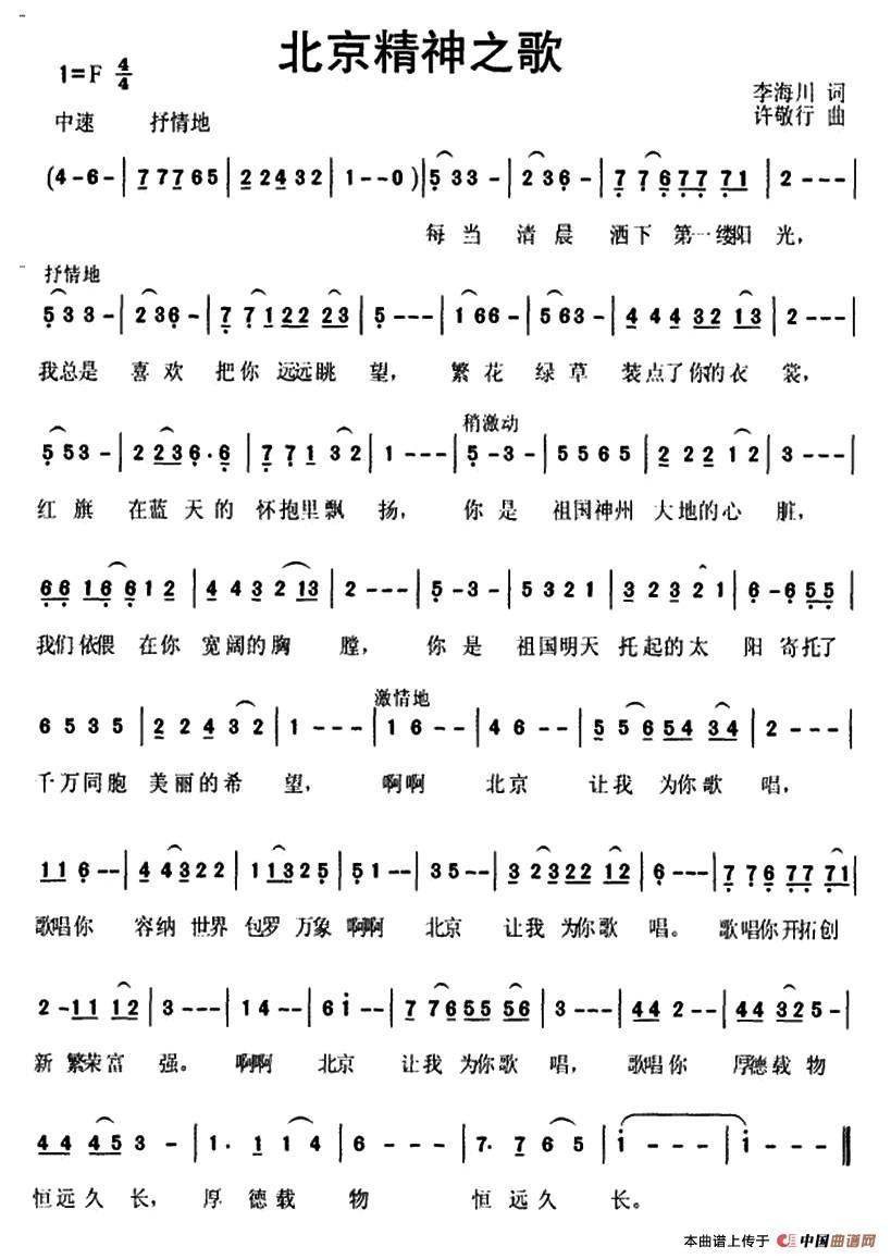 北京精神之歌相关五线谱