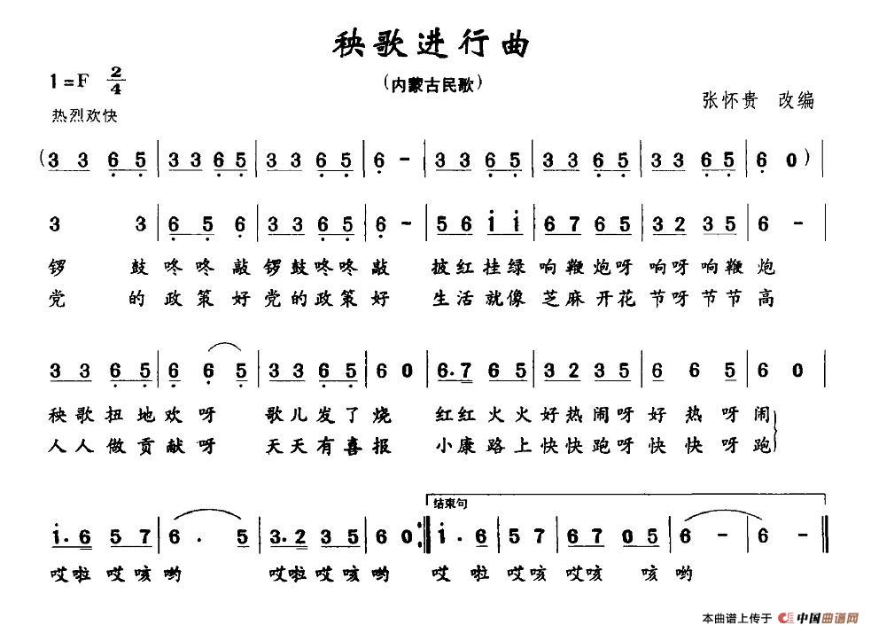 秧歌进行曲相关五线谱