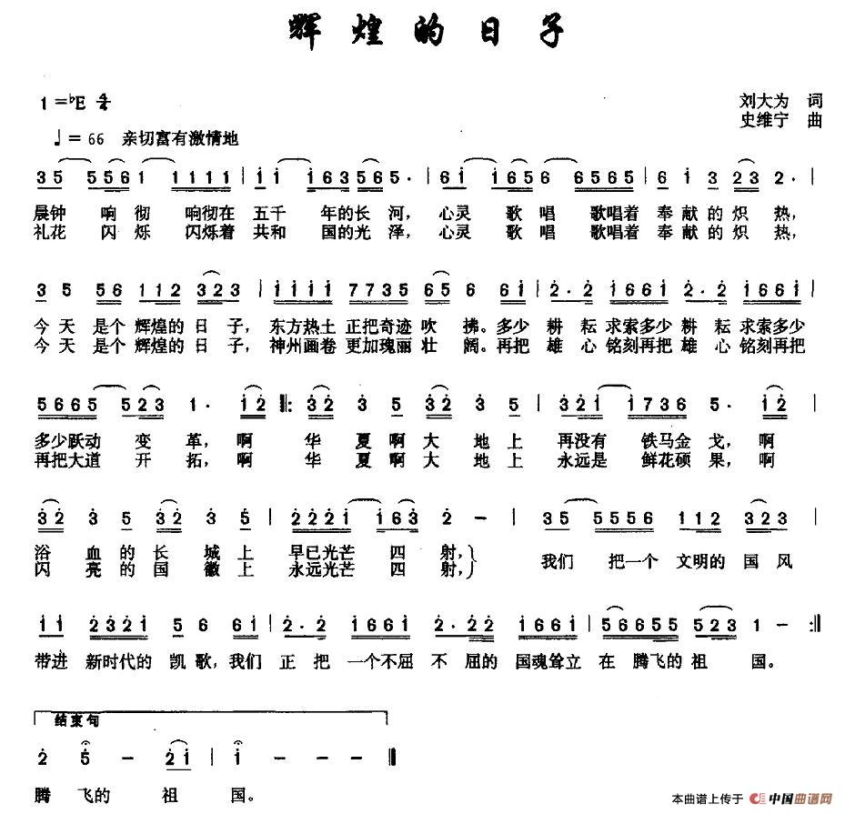 辉煌的日子相关五线谱