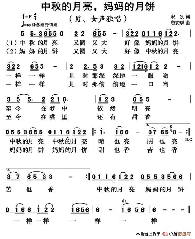 中秋的月亮,妈妈的月饼相关五线谱