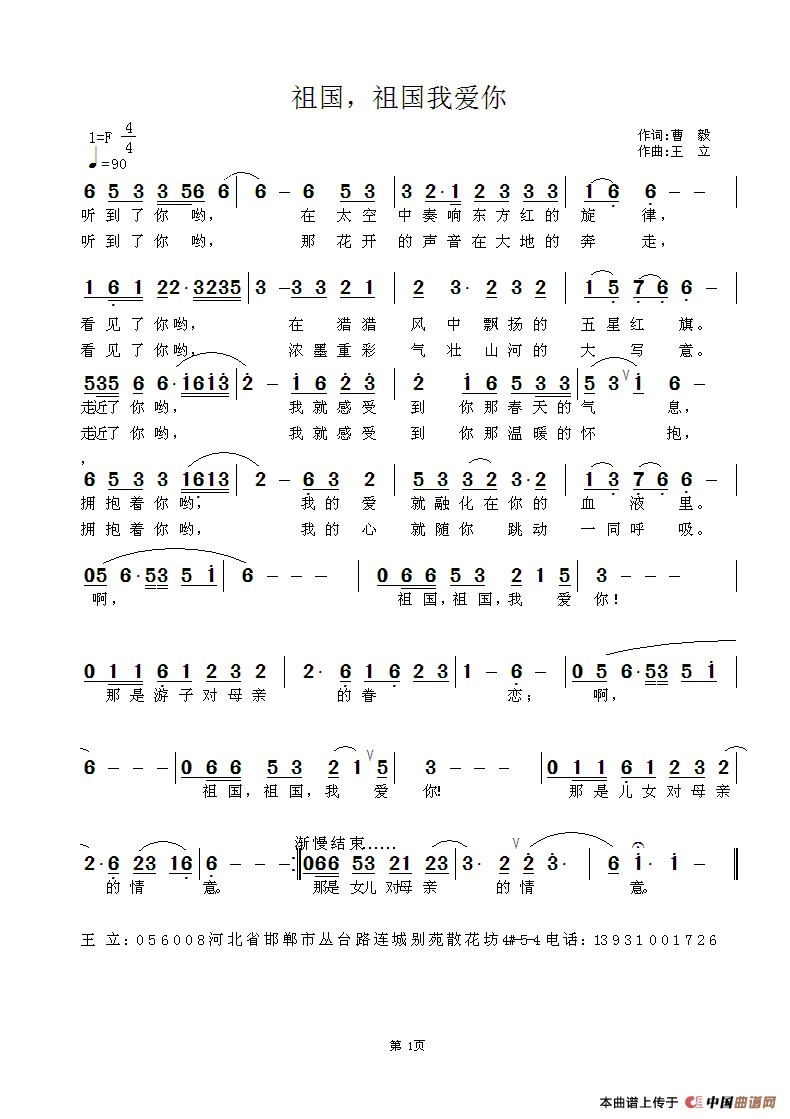 王立曲谱推荐葬花吟临沂我的情(高歌词 王立曲)红尘荷花等你在手机里我爱你美丽任丘飞吧,鸽子紫菱洲歌(87版电视剧《红楼梦》插曲)我的祝福你听见了吗(女声合唱)中国金灿灿葬花吟(电视连续剧《红楼梦》插曲)飞吧,鸽子(纪录片《鸽子》插曲)驼铃(降央卓玛)题帕三绝(电视连续剧《红楼梦》插曲)十二生肖迎春到千灯古镇热泪颂(谷传民词 王立东曲)牧羊曲绿都南宁扶起你(秦雅丽词 王立东曲)太阳岛上