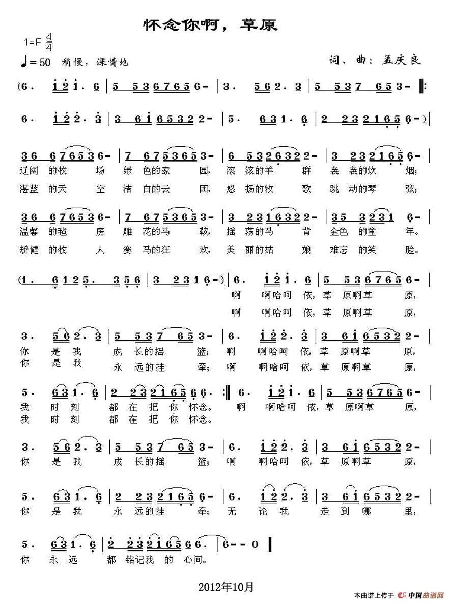 怀念你啊,草原相关五线谱