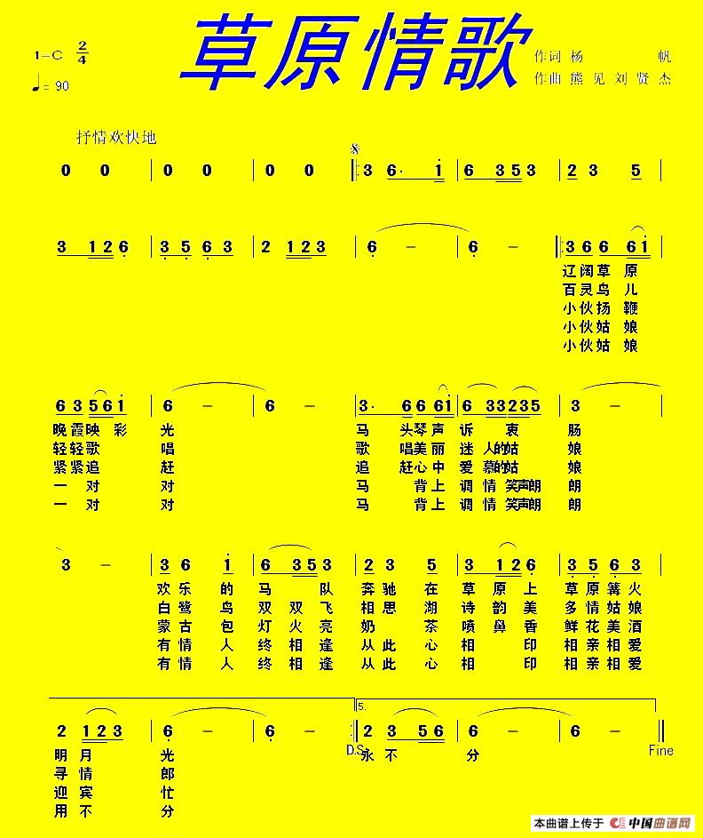 草原情歌(杨帆词 熊见 刘贤杰曲)相关五线谱