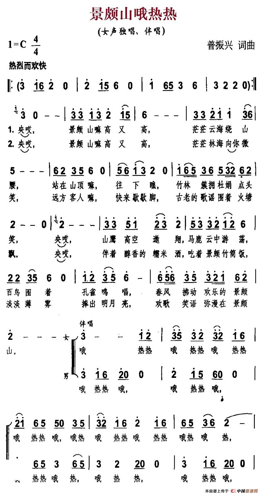 景颇山哦热热相关五线谱