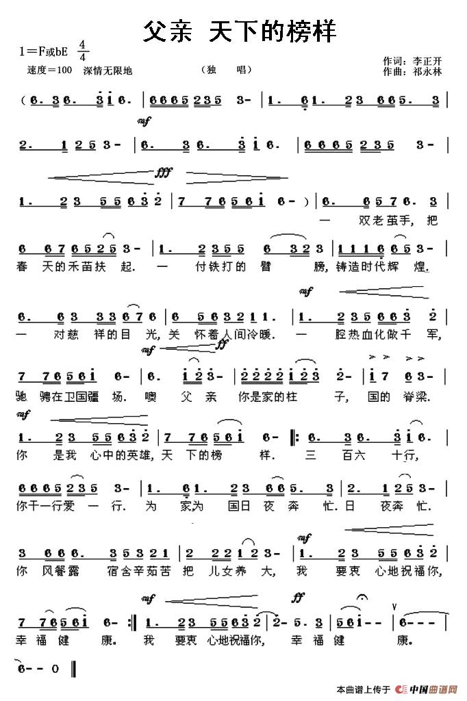 父亲 天下的榜样相关五线谱
