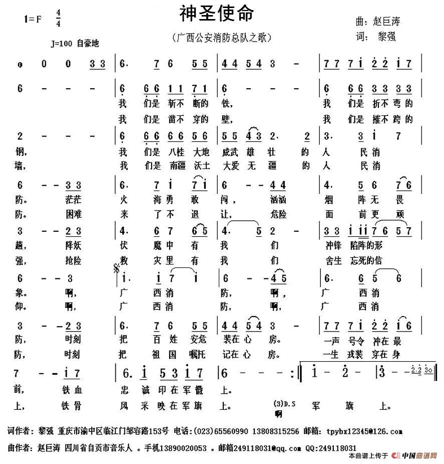 神圣使命(广西公安消防总队之歌)相关五线谱