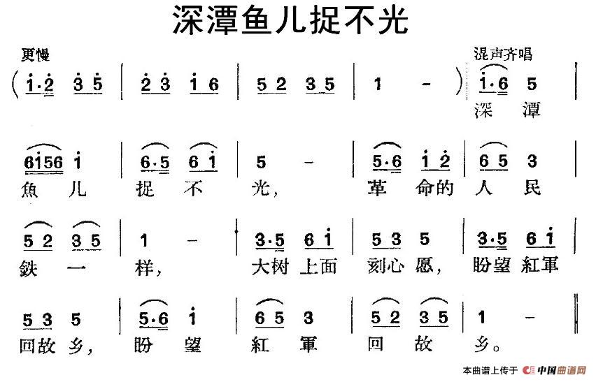 深潭鱼儿捉不光相关五线谱