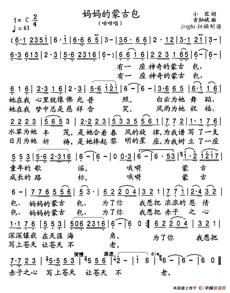 妈妈的蒙古包(小容词 古灿斌曲)相关五线谱