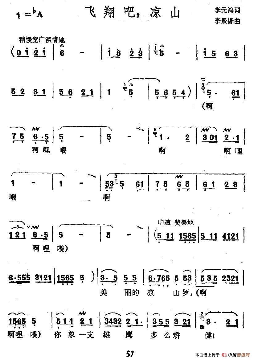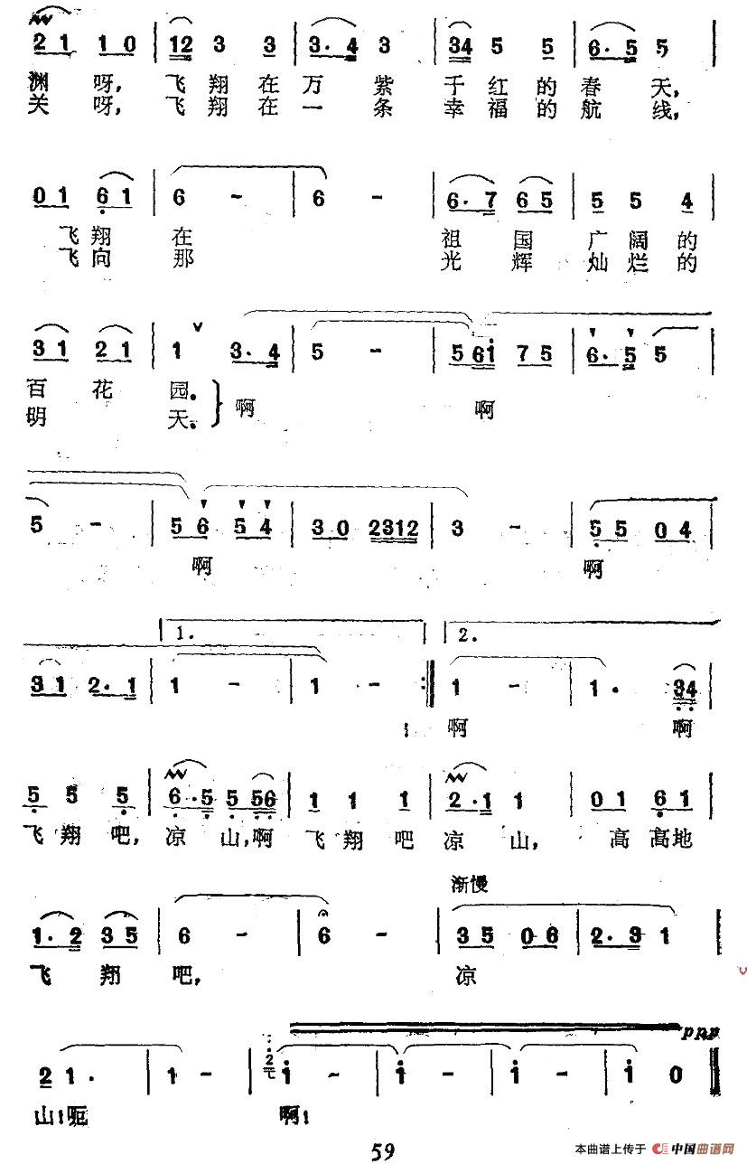 飞翔吧,凉山相关五线谱