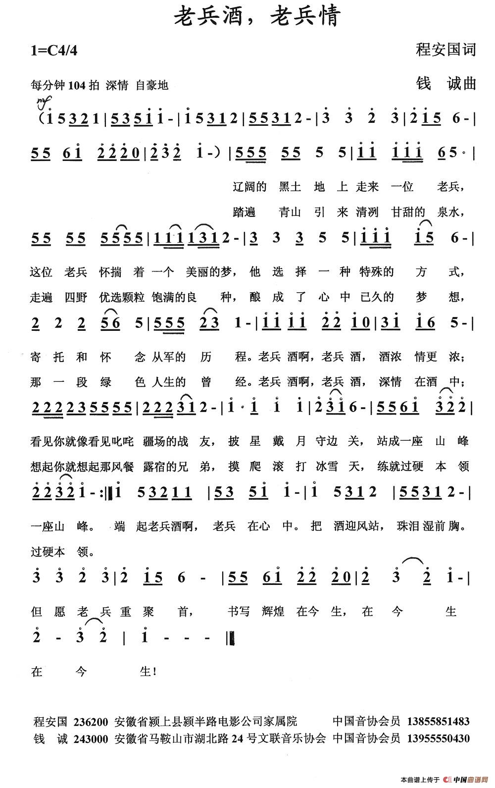 钱诚曲谱推荐娃娃的中国梦你是那样高尚美丽(唱给最美教师张丽莉的歌)生死相依(陈兴玲词 钱诚曲)下江南(杨元其词 钱诚曲)楼兰姑娘(王和泉词 钱诚曲)黄梅缘(黄梅戏戏歌)情洒钓鱼岛歌唱世界儿歌日 (快乐天使胡平 唱)大浪淘沙(陈兴玲词 钱诚曲)放心红月季幸福的方向(高文献词 钱诚曲)当兵为了谁(王培元词 钱诚曲)天梯之路念奴娇·追思焦裕禄(习近平词 钱诚曲)大美安徽(程安国词 钱诚曲)啊 祖国美 祖国美走过冬天(程安国词 钱诚曲)你是明月 你是雪莲我在千岛湖等你(程安国词 钱诚曲)