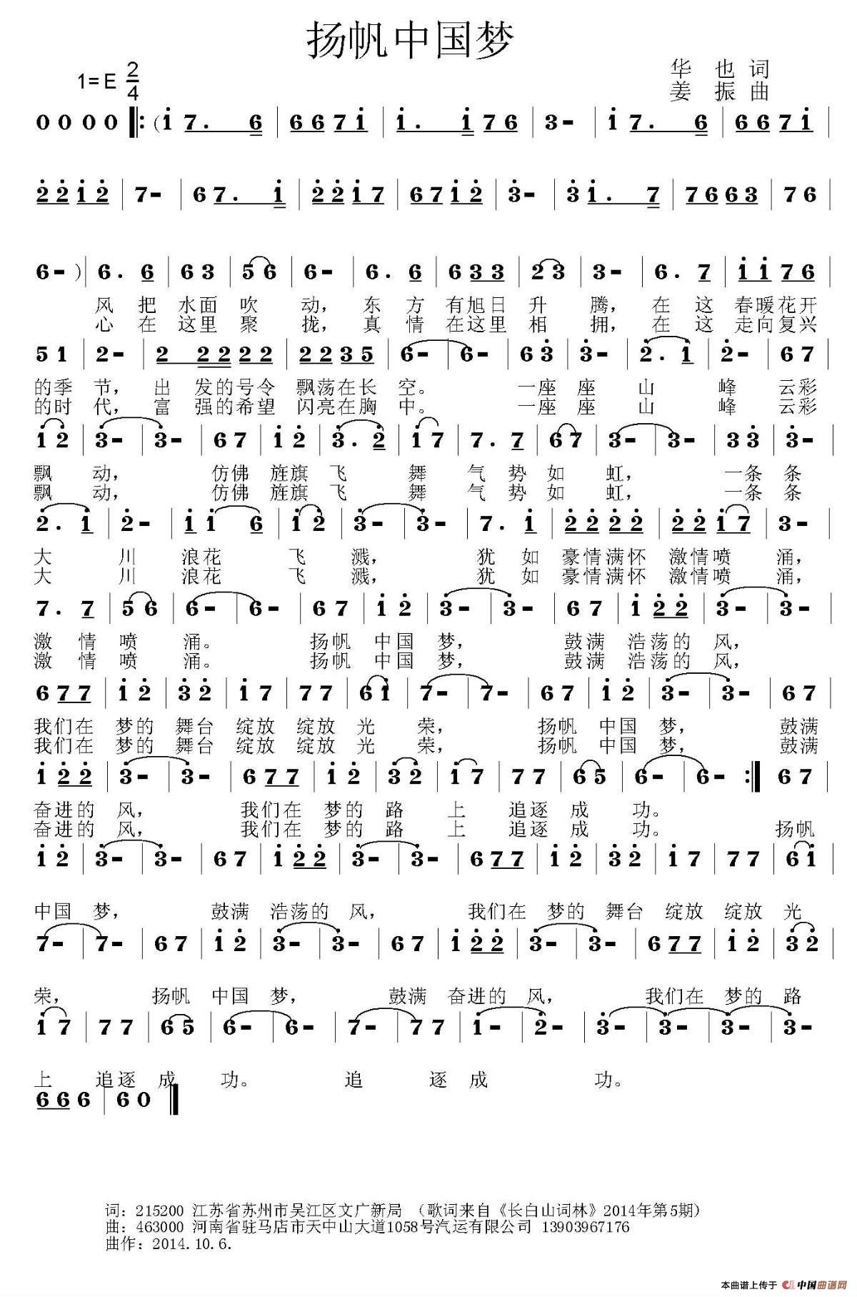 姜振曲谱推荐网上团圆明乘法师白云(王春明词 姜振曲)中华文明中华情最想家的时候感恩好人(佟文西词 姜振曲)你像一朵雪莲爱就爱它个轰轰烈烈在路上(柳家艾词 姜振曲)梦恋(王春明词 姜振曲)你的爱伴我走四方从我做起(王春明词 姜振曲)麦子飘香你说怪不怪(李铮词 姜振曲)归航(杨国华词 姜振曲)大英雄(王春明词 姜振曲)情满中华(马婵娟词 姜振曲)我的醉美家乡(崔殿广 罗福祥词 姜振曲)一盏心灯(高峰词 姜振曲)花开中国(严惠萍词 姜振曲)