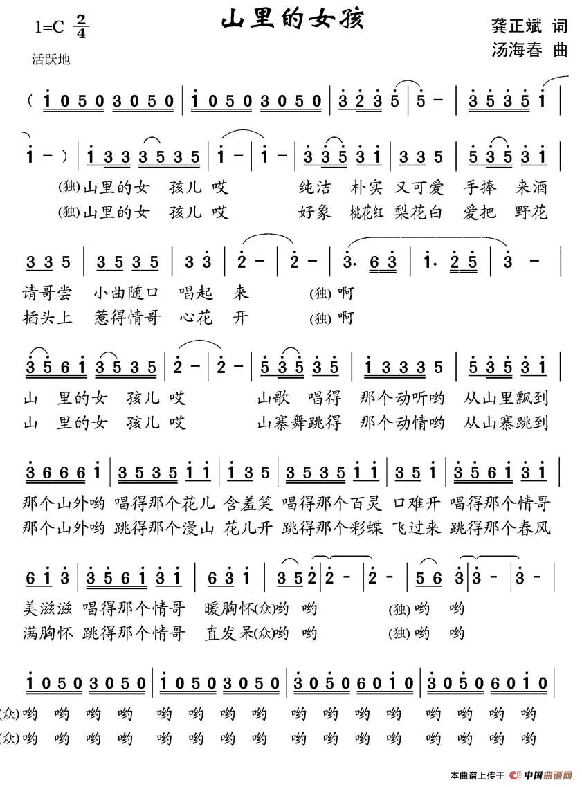山里的女孩(龚正斌词 汤海春曲)相关五线谱