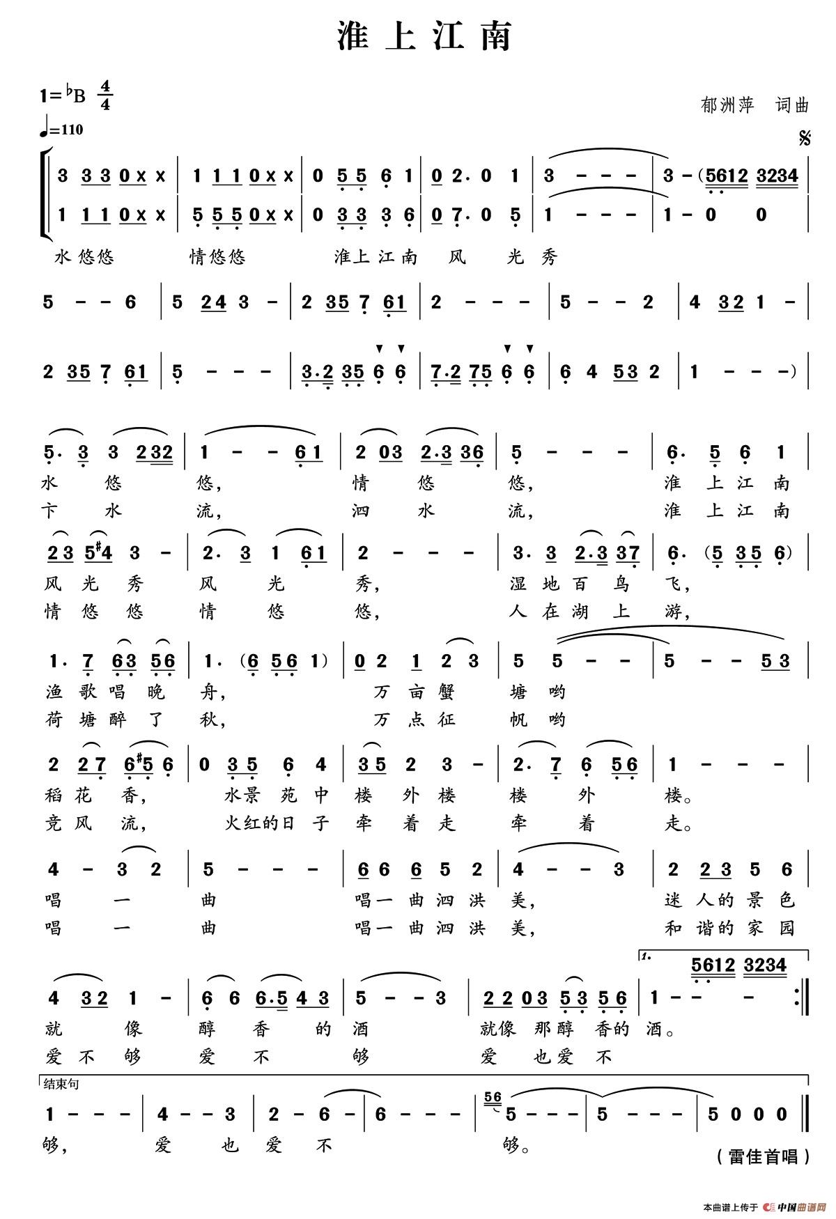 郁洲萍曲谱推荐我像黄河,黄河像我妈妈的白发(彭文祥词 郁洲萍曲)在海一方(乔羽词 郁洲萍曲、独唱+伴唱)因为爱上你(独唱+伴唱)风调雨顺的中国(胡宏伟词 郁洲萍曲)回望故乡(李峰词 郁洲萍曲)淮上江南(又名:水韵泗洪)香江伊人(独唱+伴唱)童年的梦想(李家珍词 郁洲萍曲)中华门古城春色春来了(雷子明词 郁洲萍曲)江南似雨似梦山妹(同名电视剧主题歌)相聚在陶都 永远手握手(又名:相聚陶都)月亮桥(梁学平词 郁洲萍曲)企盼(金磊 陈累词 郁洲萍曲)红红火火大中华(佚名词 郁洲萍曲)告慰母亲的歌(李智明词 郁洲萍曲)羊羔羔吃奶眼望着妈(石顺义词 郁洲萍曲)