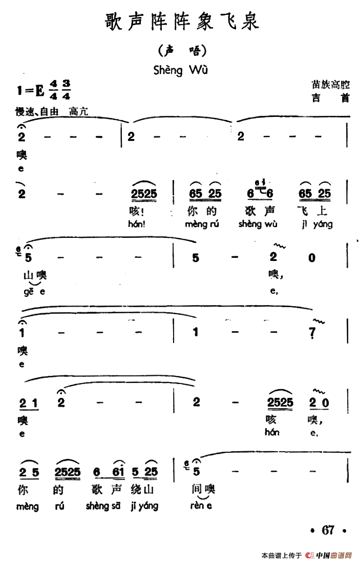 歌声阵阵象飞泉(声唔、 苗族高腔)相关五线谱