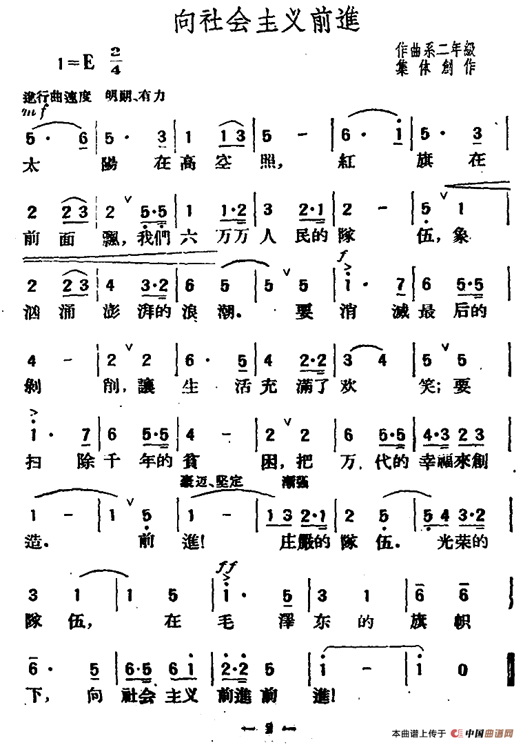 集体曲谱推荐18欢迎进行曲(长号1分谱)我们的责任,是向人民负责上学歌(集体 词曲)19欢迎进行曲(长号2分谱)17欢迎进行曲(F圆号34分谱)23欢迎进行曲(大号分谱)24欢迎进行曲(小军鼓分谱)26欢迎进行曲(大军鼓分谱)前进!伟大的祖国我们是机器制造先锋美丽的京族三岛放排歌(集体 词曲)[朝鲜]꽃피는 이 봄날에(在这鲜花盛开的春天)选出最好的礼物献给毛主席毛主席指引革命路水调歌头-重上井冈山(钱卫忠记合唱谱)11欢迎进行曲(bB次中萨克斯管分谱)12欢迎进行曲(bB短号分谱)咱们的领袖毛泽东(陕北民歌、集体改编)25欢迎进行曲(大军镲分谱)
