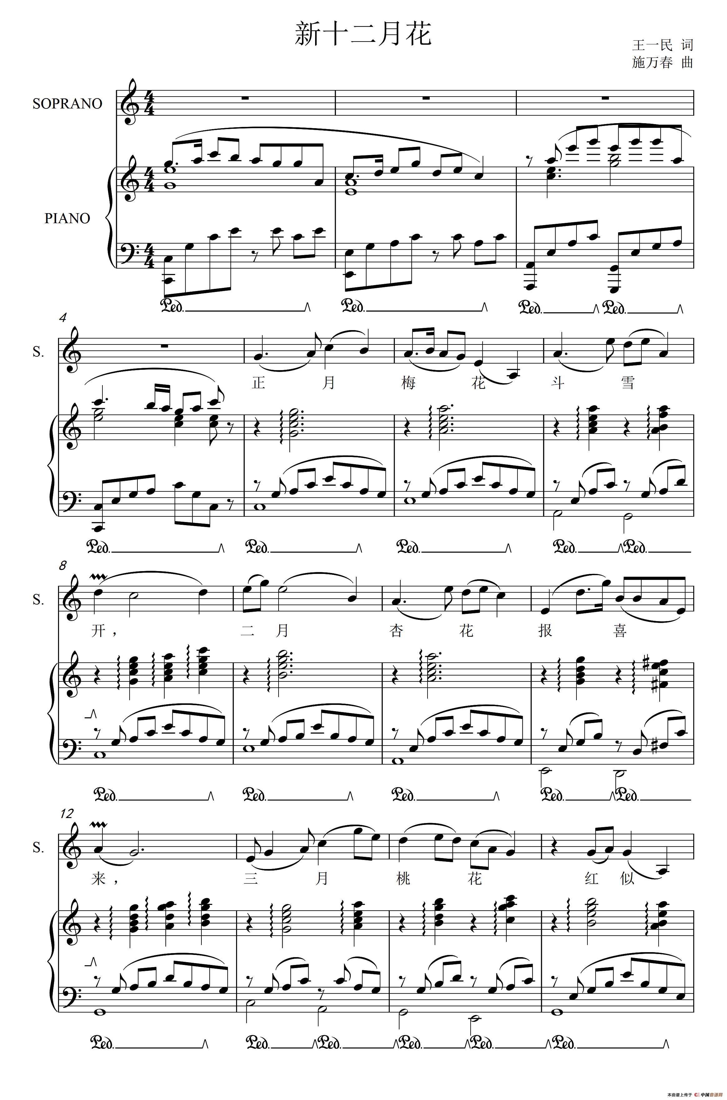 新十二月花(电影《家庭琐事录》插曲)(正谱)相关五线谱