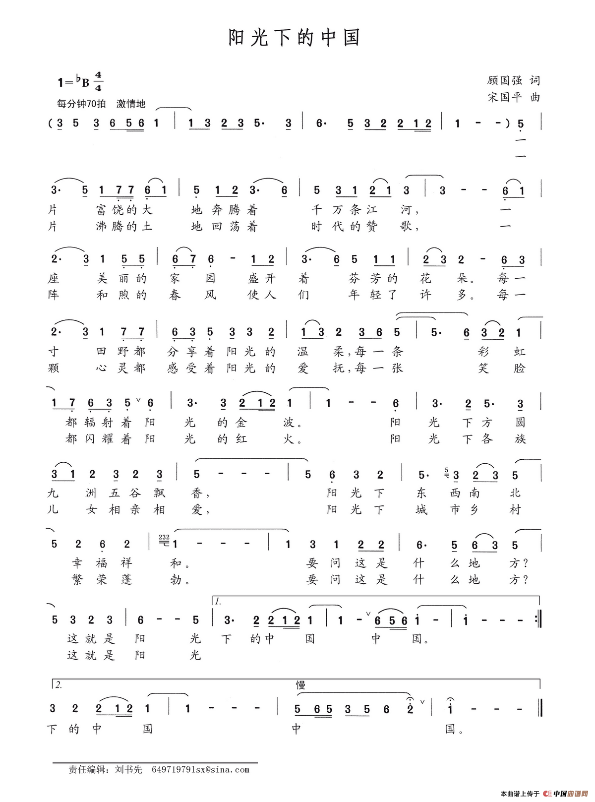 阳光下的中国相关五线谱