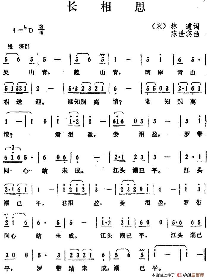 长相思([宋]林逋词 陈世宾曲)相关五线谱