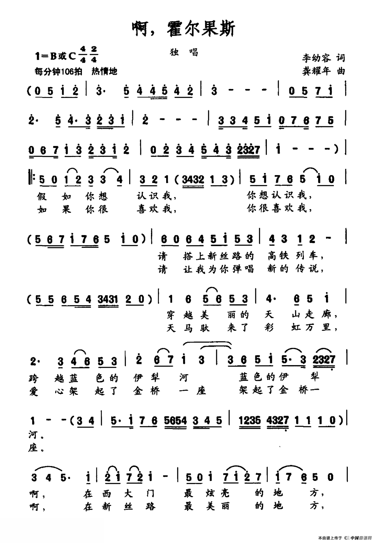 龚耀年曲谱推荐随嫦娥奔月月牙泉边雨花石(少儿歌曲钢琴弹唱谱)小青蛙(魏岚词 龚耀年曲)为了美好的家园老师的爱(杨春华词 龚耀年曲)天山恋(男女声二重唱)小儿波尔卡妈妈的爱(黄持一词 龚耀年曲)古里古里小古里火热的少年心雨花石(电视连续剧《红红的雨花石》主题歌)年轻的山,青春的海银色月光(正谱)雨花石少年进行曲(贾立夫词 龚耀年曲、五线谱)雨花石雨花石(八孔竖笛线简谱对照版)旅游之歌(任卫新词 龚耀年曲)我的红旗 我的镰锤