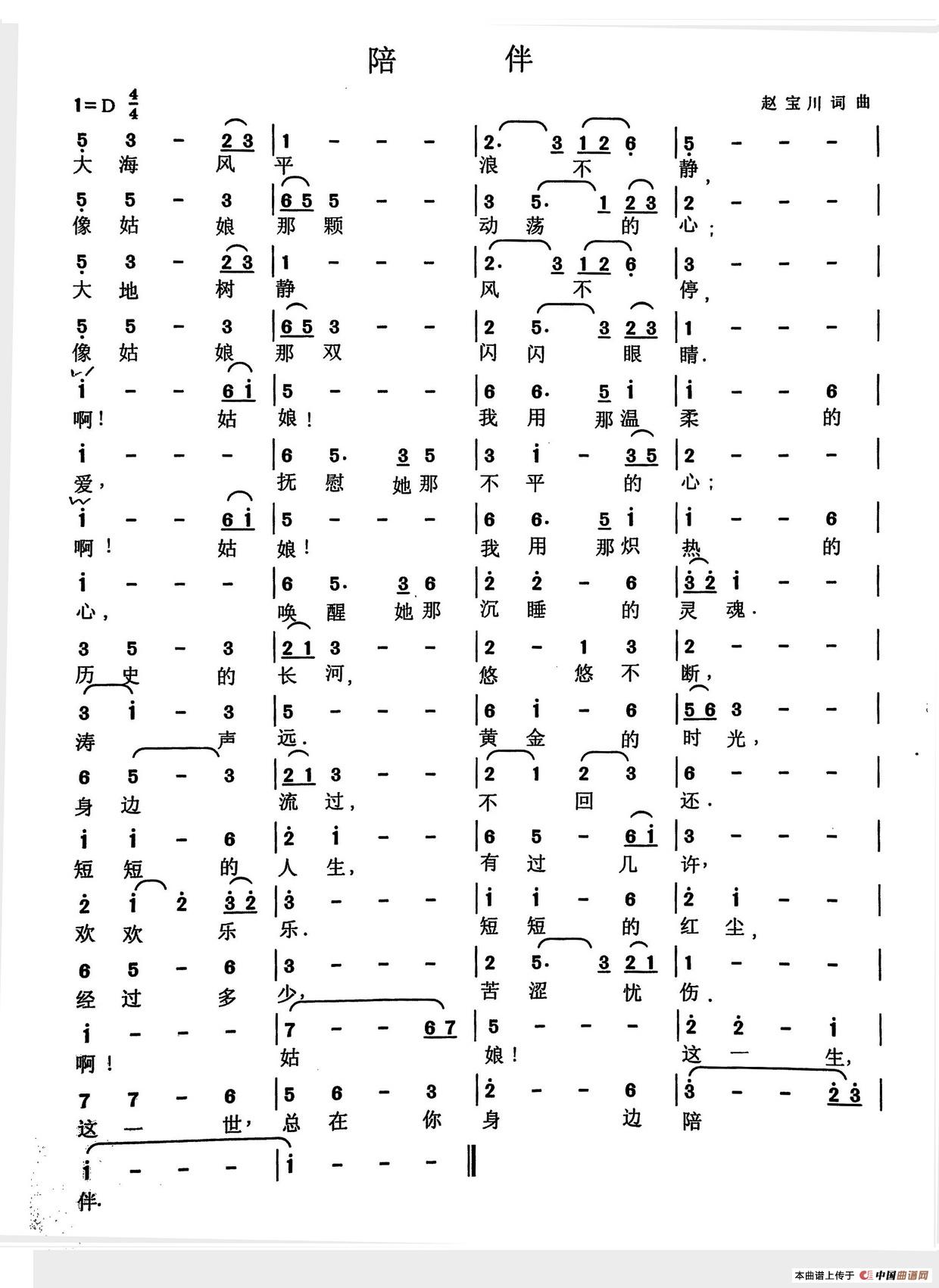 陪伴(赵宝川词 赵宝川曲)相关五线谱