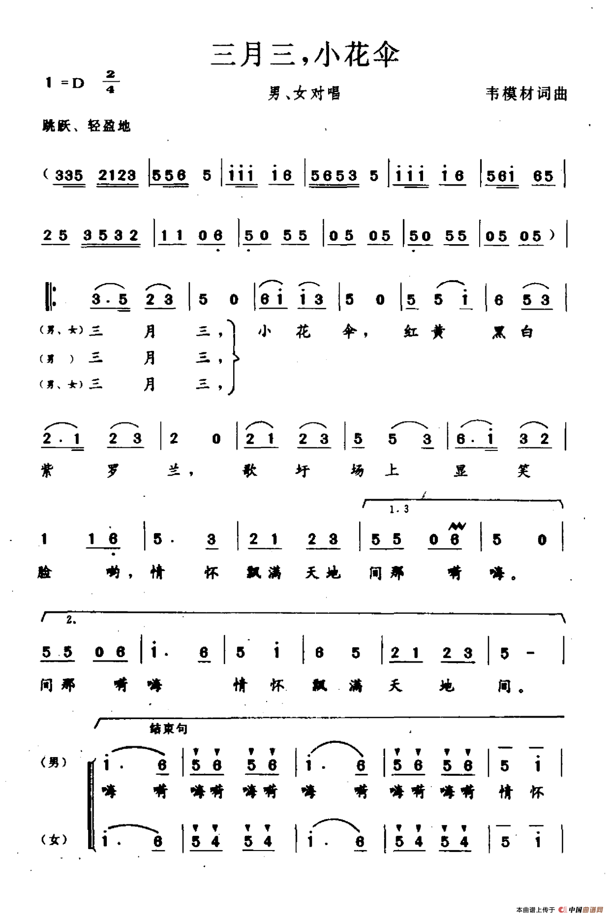 三月三,小花伞相关五线谱
