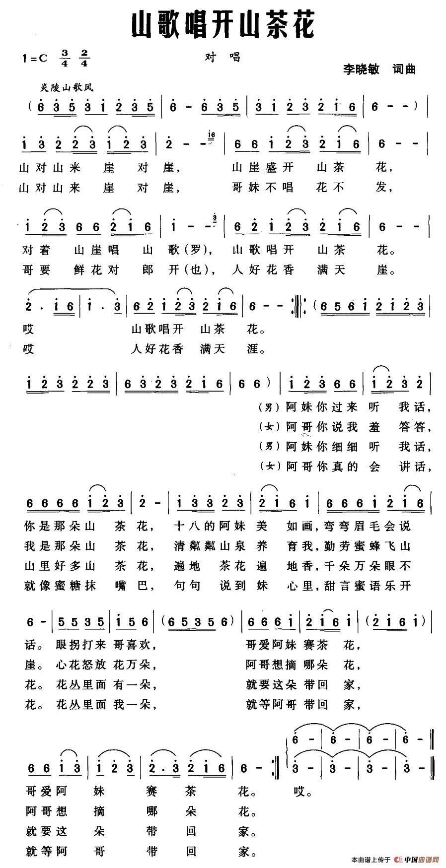 山歌唱开山茶花相关五线谱