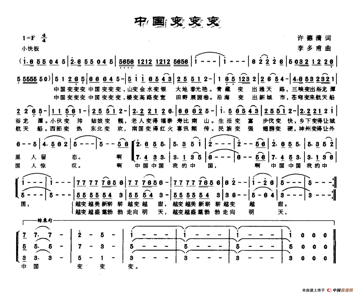 中国变变变(许德清词 李多甫曲)相关五线谱