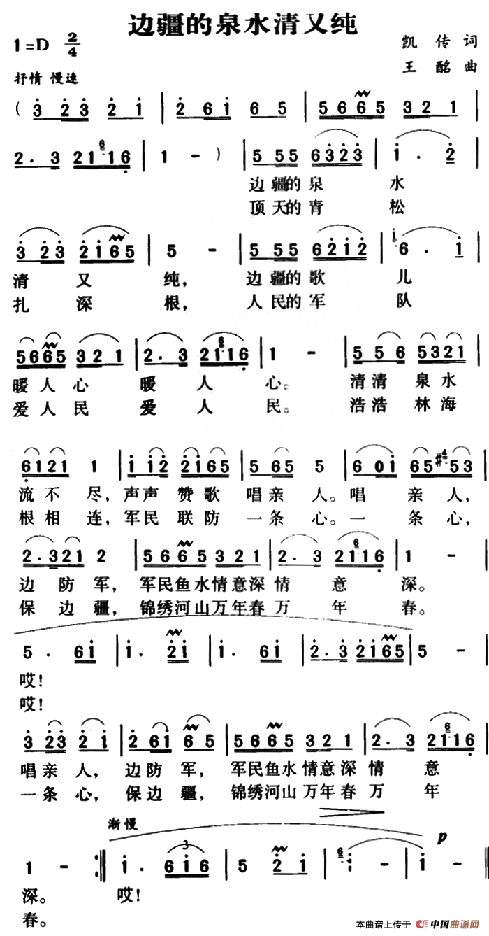 军歌金曲:边疆的泉水清又纯相关五线谱