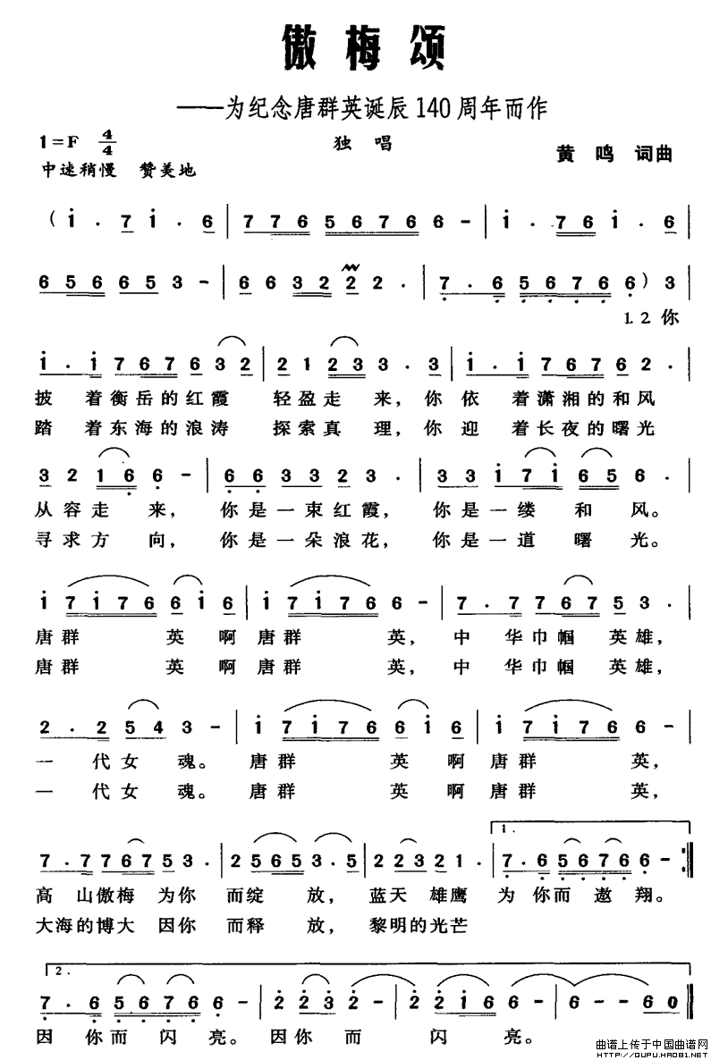傲梅颂相关五线谱