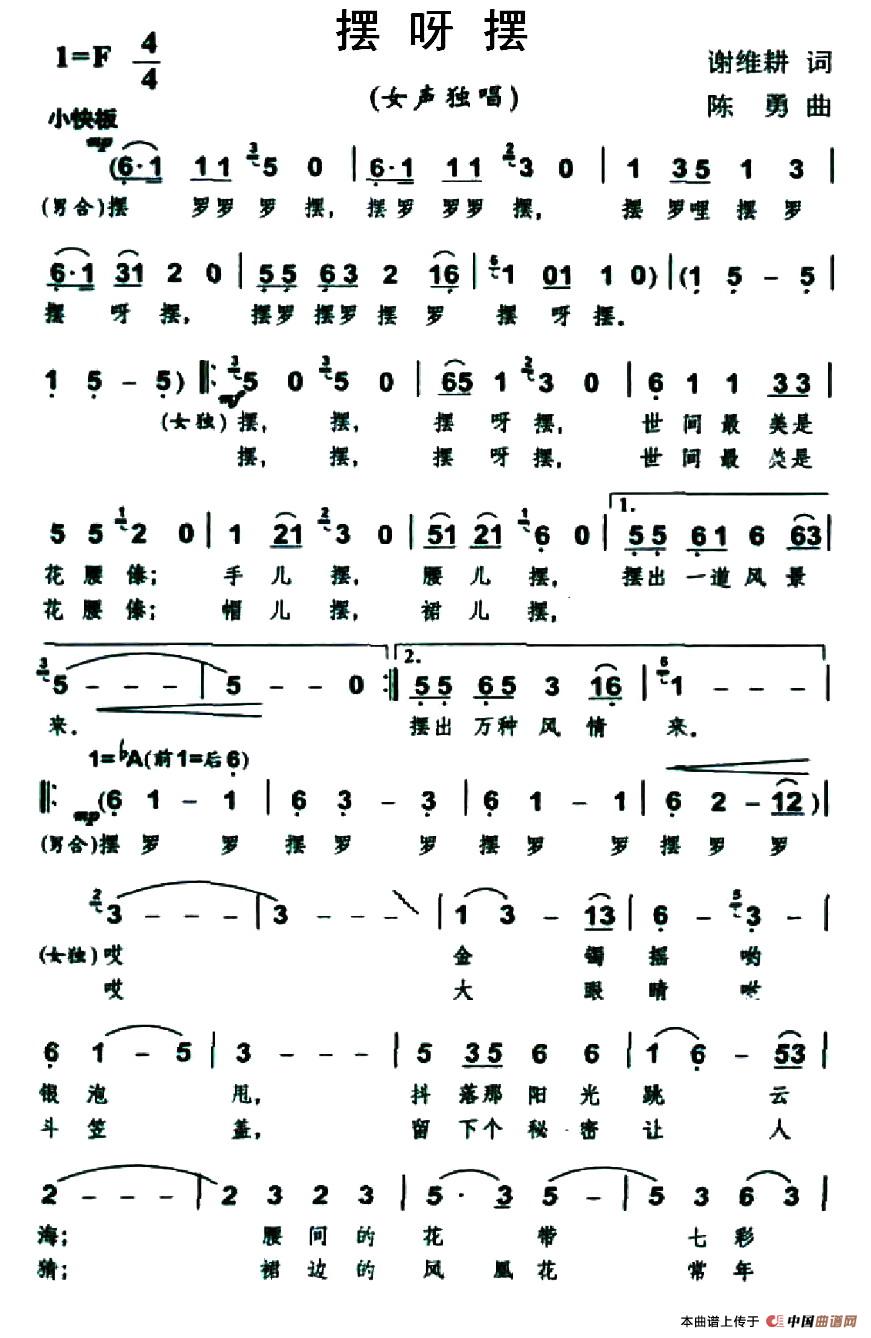陈勇曲谱推荐一座丰碑(郑明词 陈勇曲、正谱)茶马古道(宋佳良词 陈勇曲、正谱)火把节的火把大理石的故乡中国梦,你我的梦(正谱)祖国,我深深爱着你海恋(陈勇词曲、正谱)月光恋(刘位循词 陈勇曲、正谱)依山傍水的小村庄(丹增词 陈勇曲)版纳的春雨(金鸿为词 陈勇曲、正谱)寻找太阳升起的地方(正谱)彩云之南,心的向往布衣人家(二重唱)霞山之恋青山绿水普者黑月光恋(刘立循词 陈勇曲)祖国,我深深地爱着你(邓永旺词 陈勇军曲)寻找太阳升起的地方茶油之都等你来彩云之南 心的向往(正谱)
