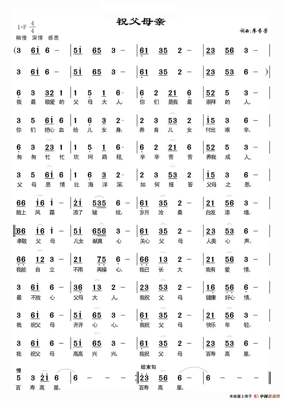 祝父母亲相关五线谱