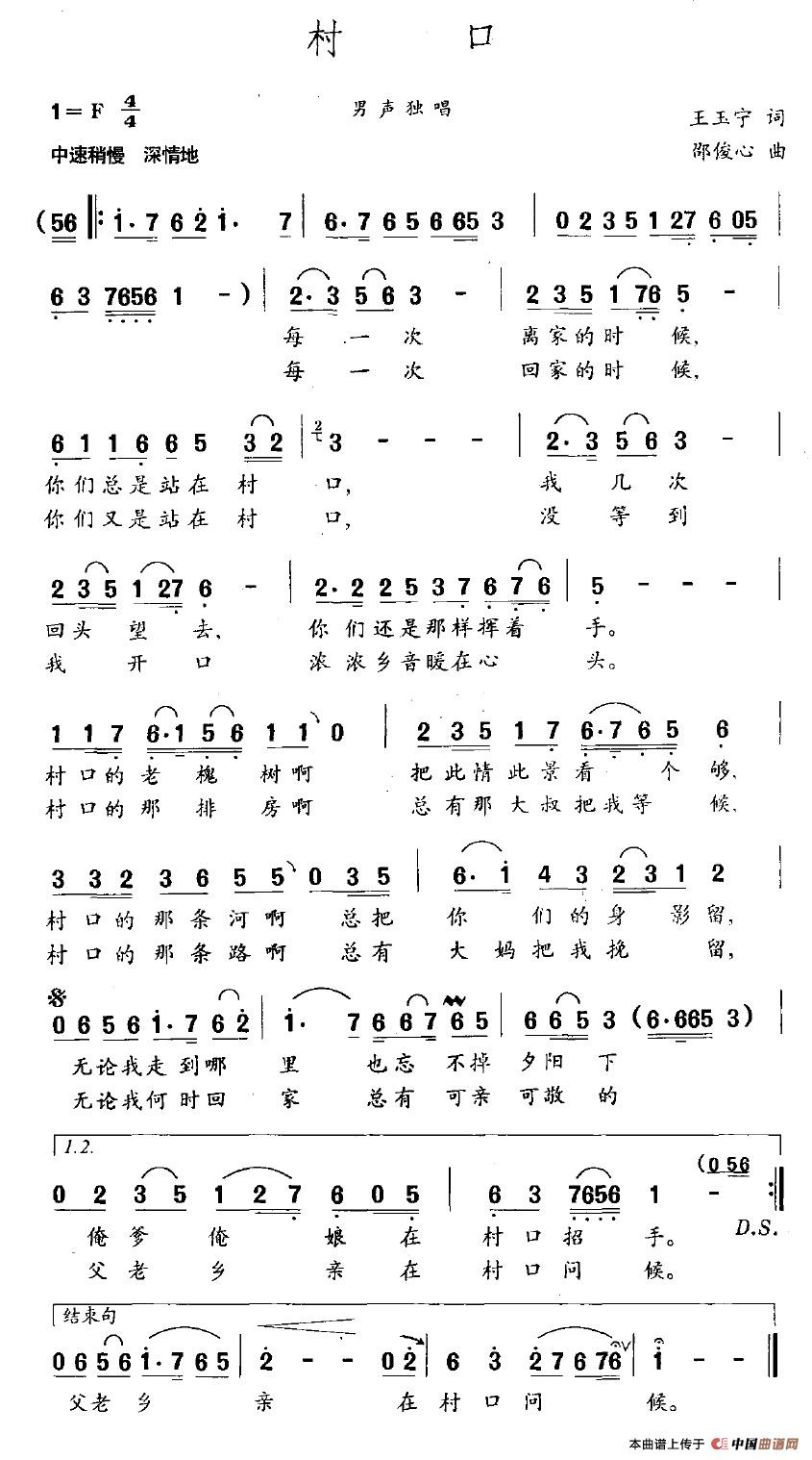 村口(王玉宁词 邵俊心曲)相关五线谱