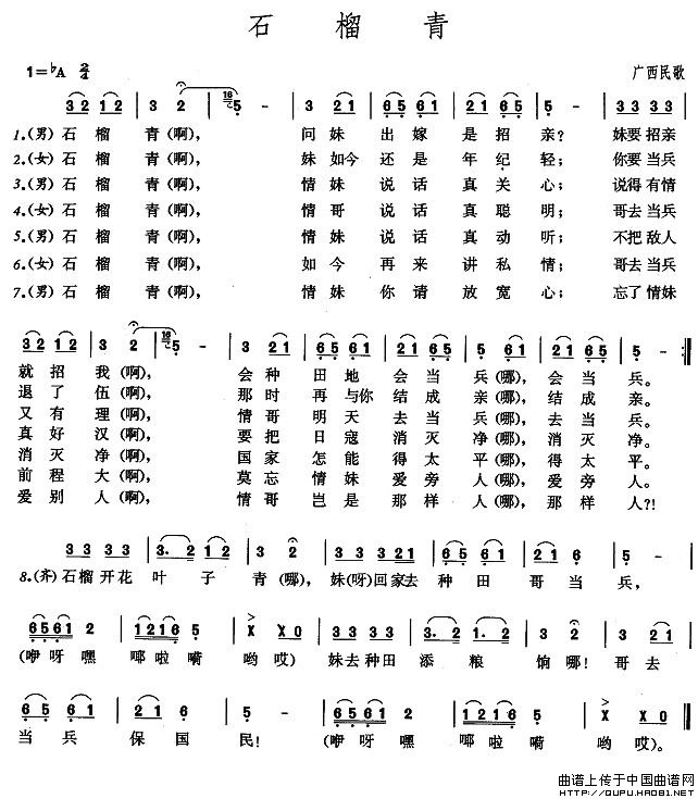 石榴青相关五线谱