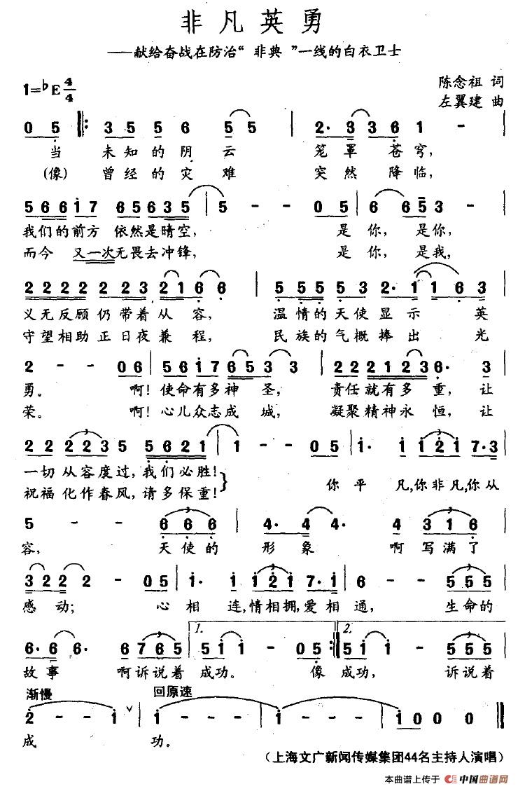 非凡英勇(献给奋战在防治“非典”一线的白衣卫士)相关五线谱
