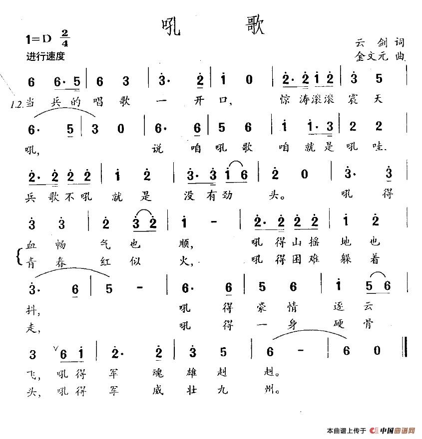 吼歌(云剑词 金文元曲)相关五线谱