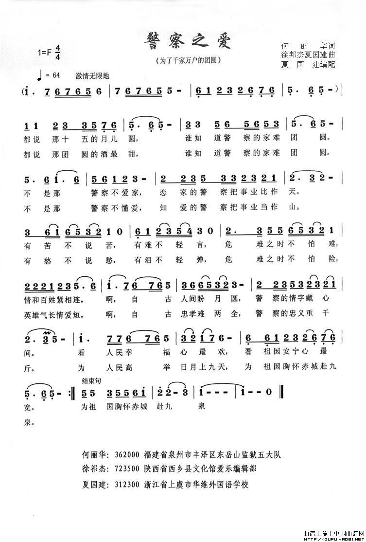 警察之爱相关五线谱