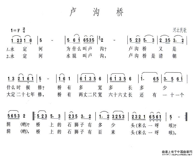 卢沟桥相关五线谱