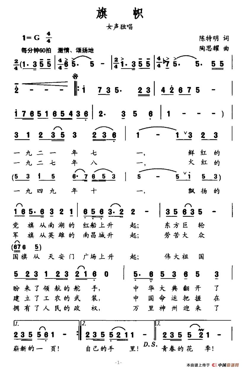 陶思耀曲谱推荐啊!中国的土地6旗帜(双谱)世纪握手(葛逊词 陶思耀曲)中国梅里、二胡之乡(女声独唱)军休干部之歌走江苏 爱江苏(女民通独唱)莫愁啊莫愁(二声部)军旗下的歌声醉花阴·三月扬州行(方祖岐词 陶思耀曲)啊!中国的土地(A调伴奏)莫愁啊莫愁中华根我爱故乡银杏树香港,我爱你(男女高音独唱)长征丰碑颂我的家园(阿古拉泰词 陶思耀曲)鋩锣之歌啊,中国的土地香江情壮丽中国梦啊,莫愁,莫愁(又名:莫愁啊莫愁)