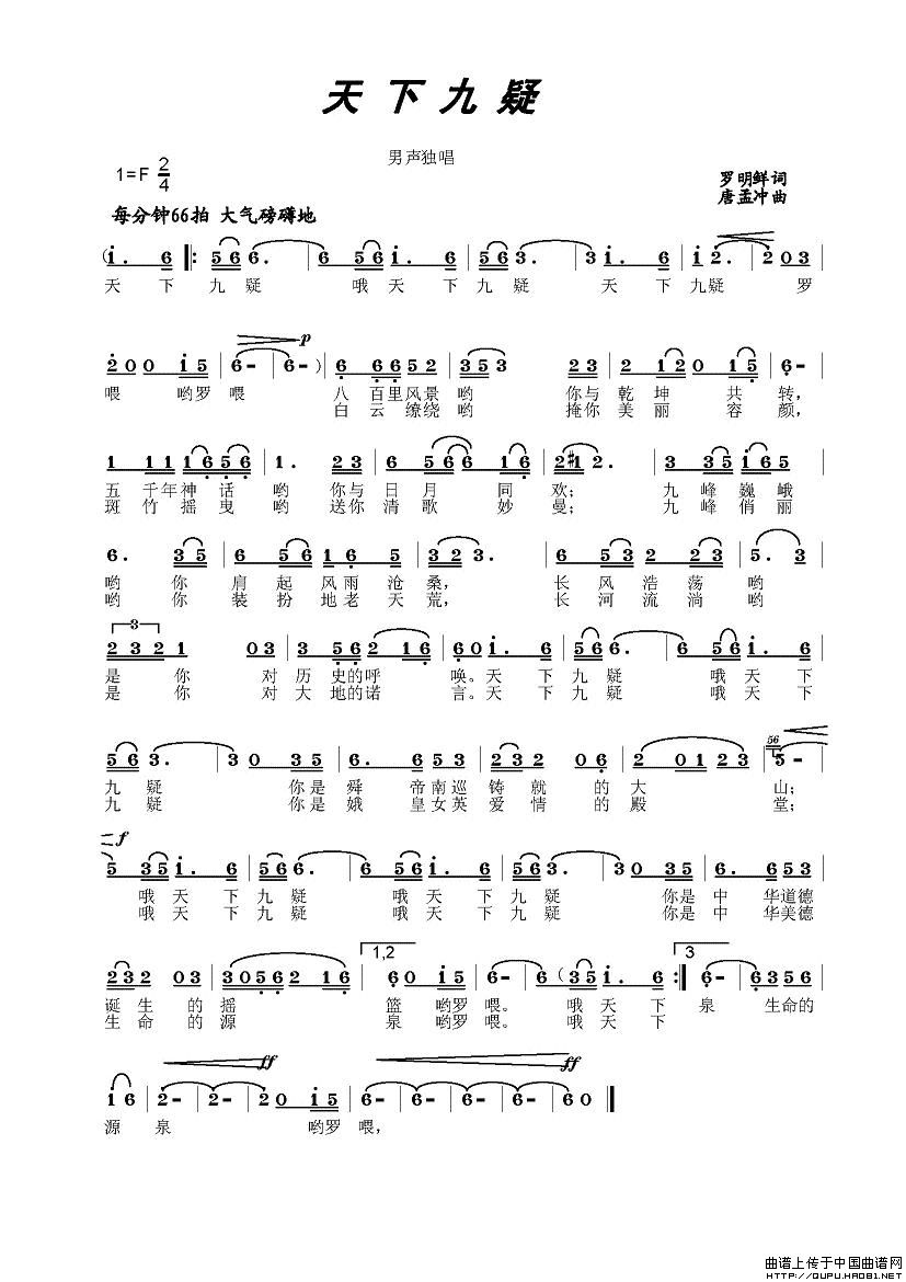 唐孟冲曲谱推荐南岭之歌九嶷山颂亲爱的祖国(吕杰汉词 唐孟冲曲)我是农民(李隆汉词 唐梦冲曲)你是走向辉煌的红旗好长好长的大江万古黄河浪滔滔让我来帮助你又唱山歌给党听蝴蝶飞(彭子柱词 唐孟冲曲)梦在飞翔(唐生瑜词 唐孟冲 谢芳曲)新新老人新田是个好家园最美江华大瑶山阳明山放歌共和国之恋(胡泽民词 唐孟冲曲)春绿大瑶山想爹娘(唐孟冲词 唐孟冲曲)问桃花有了你(唐孟冲 词曲)