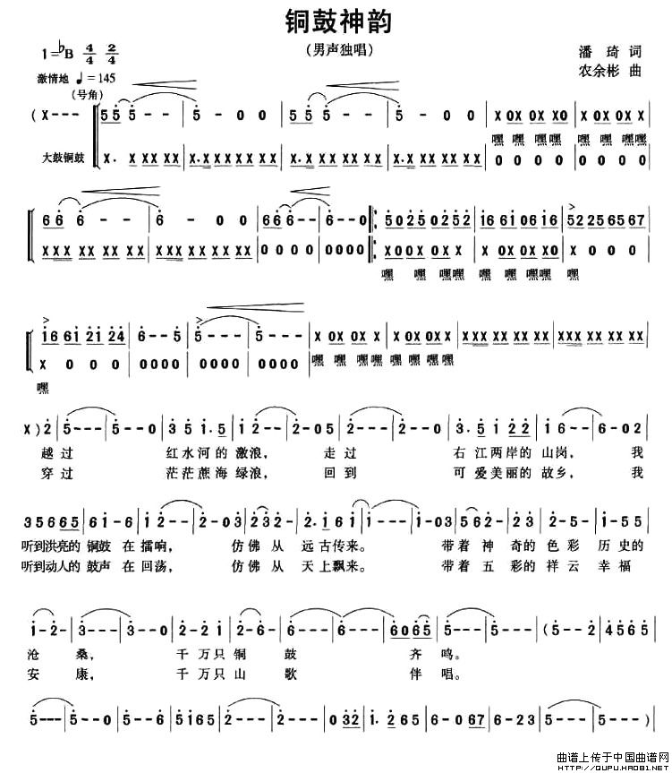 铜鼓神韵相关五线谱