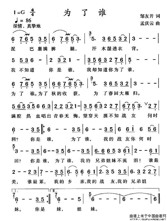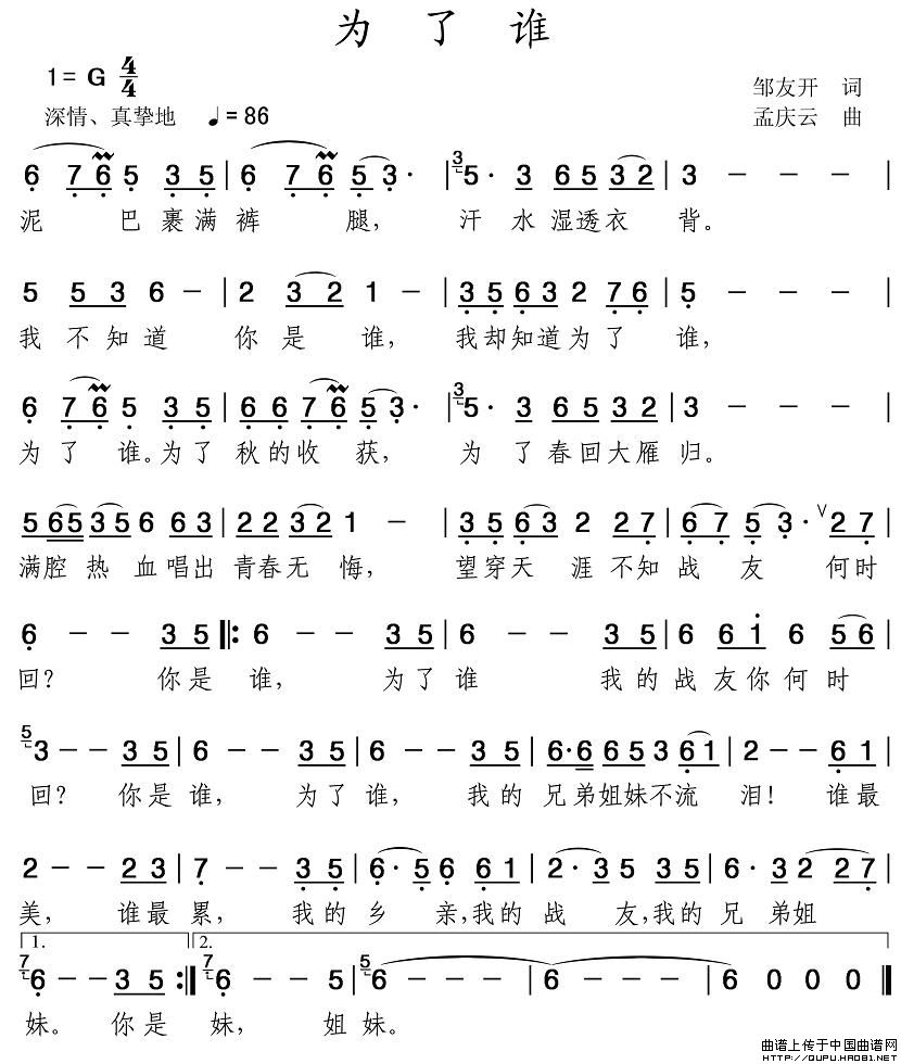 孟庆云曲谱推荐老师我想你(二部合唱)军歌金曲:穿军装的川妹子东海明珠我仰望五星红旗走在百姓行列里(正谱)洪湖别样红贵州恋歌(葫芦丝独奏)9红旗的传说(双谱)乡愁(黄石词 孟庆云曲)玉井莲故乡恋情(胡子林词 孟庆云曲)祖国(朱连璋词 孟庆云曲)好乡亲又唱绣红旗(铁金)长城长(电视专题片《盘石》主题曲)黄鹤楼(潘家华词 孟庆云曲)慈爱(曾华灿词 孟庆云曲)红领巾,飘起来红色热土(潘琦词 孟庆云曲)为共和国默默行军