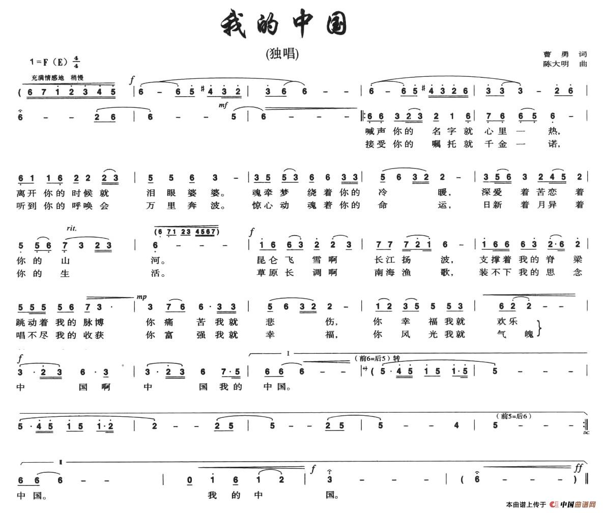 陈大明曲谱推荐秦淮灯船(二重唱、合唱)中华龙舞起来红小鬼(陈维东词 刘章 陈大明曲)党旗飘飘(王磊词 陈大明曲)春华秋实(西安理工大学校歌)让梦都甜蜜风沙掠过我的城市香港1997(正谱)黄河从我身边流过守望大海的士兵一个连队与一座城市黄河之恋(王军道词 陈大明曲)中国退役军人之歌(陈海涛)美丽咸阳,圆梦的地方拥抱春天(鸣波词 陈大明曲)快快走进你(演唱:沙莎)我热恋的中国大地香港1997这种情感叫爱恋(张枚同词 陈大明曲)不要等