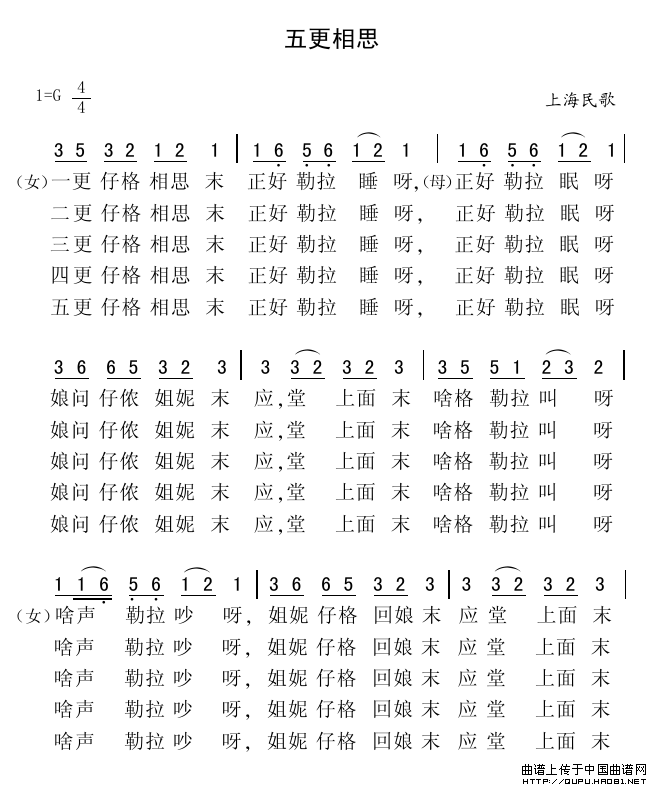 五更相思相关五线谱