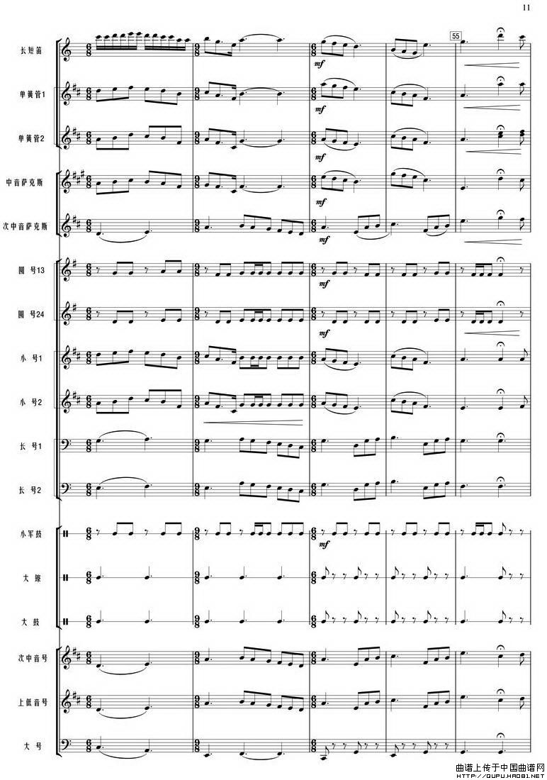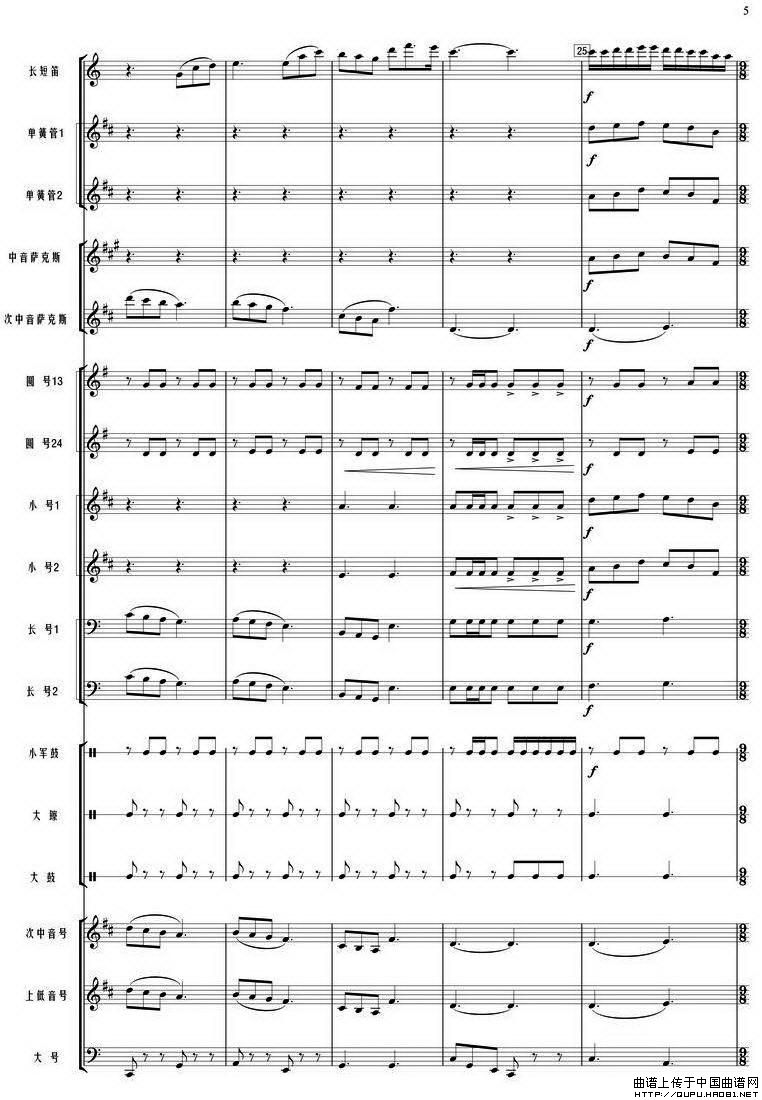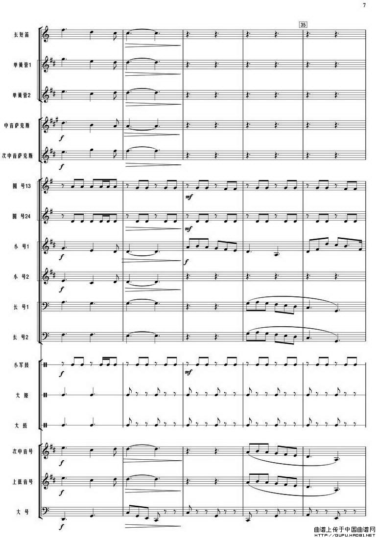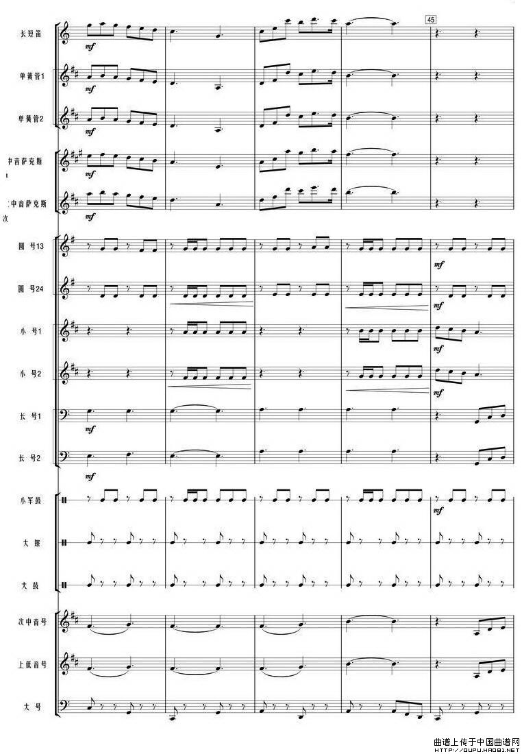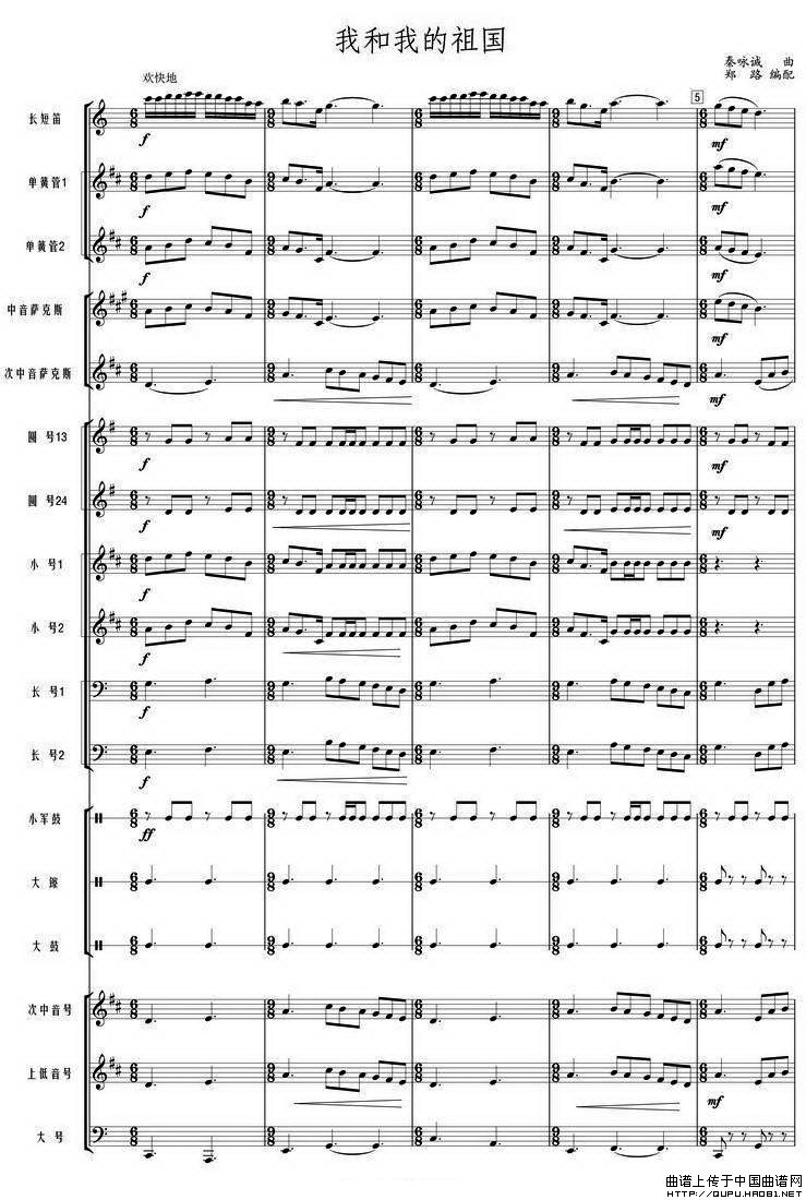 我和我的祖国(管乐合奏总谱)相关五线谱