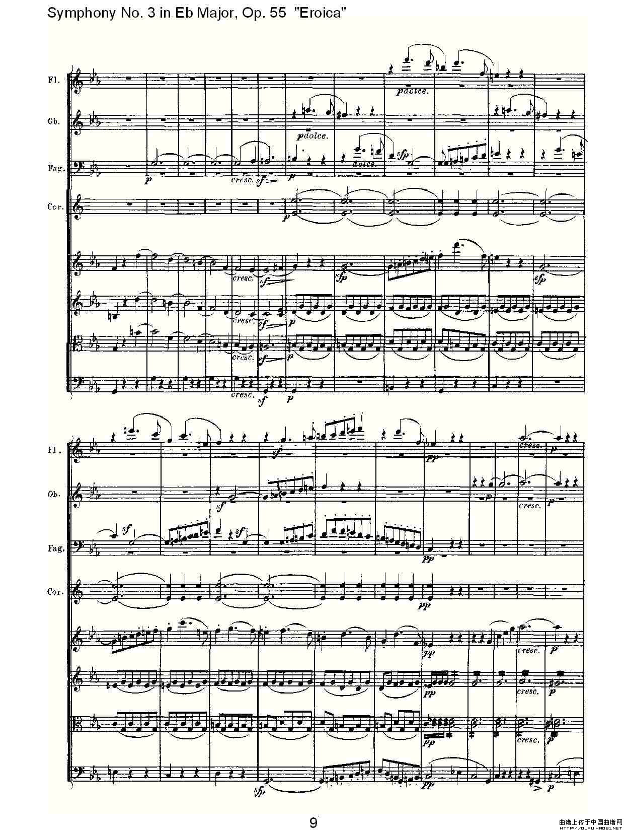 英雄交响曲(又名:降E大调第三交响曲)第一乐)相关五线谱