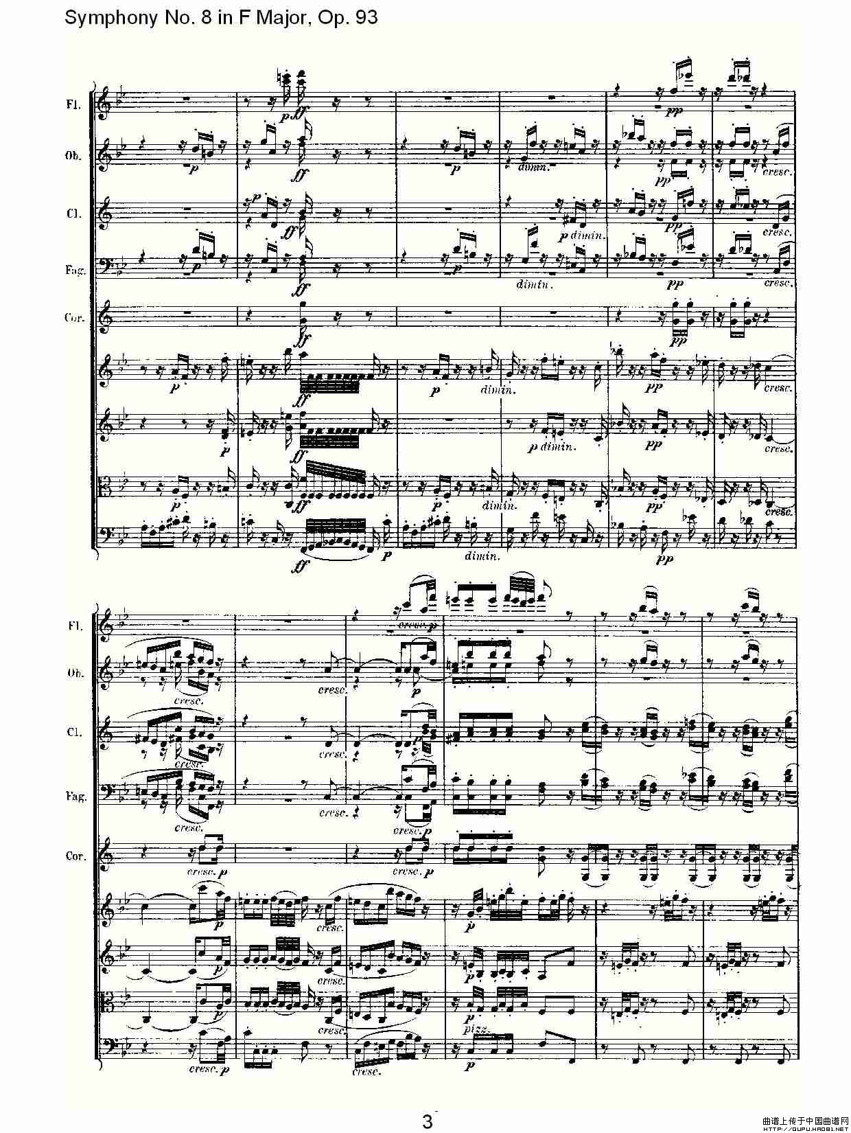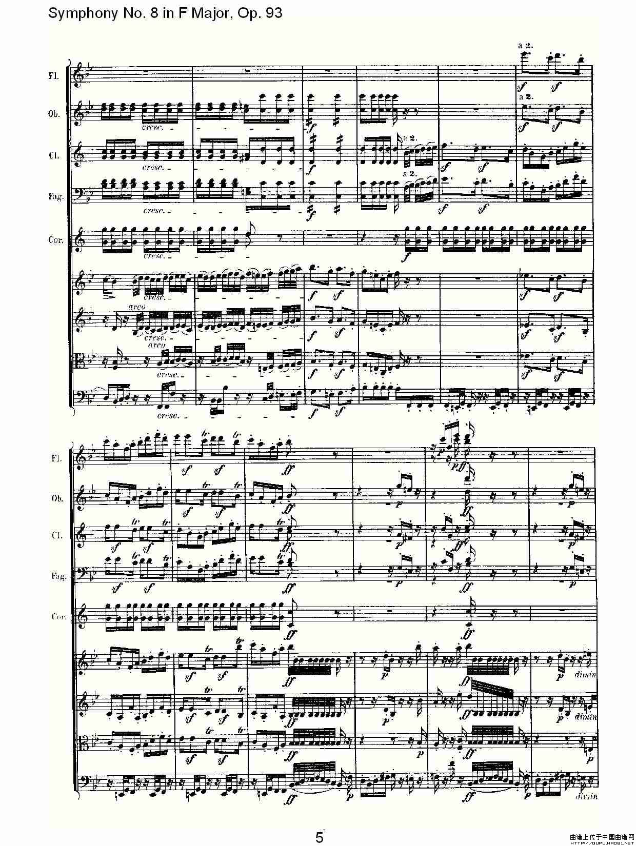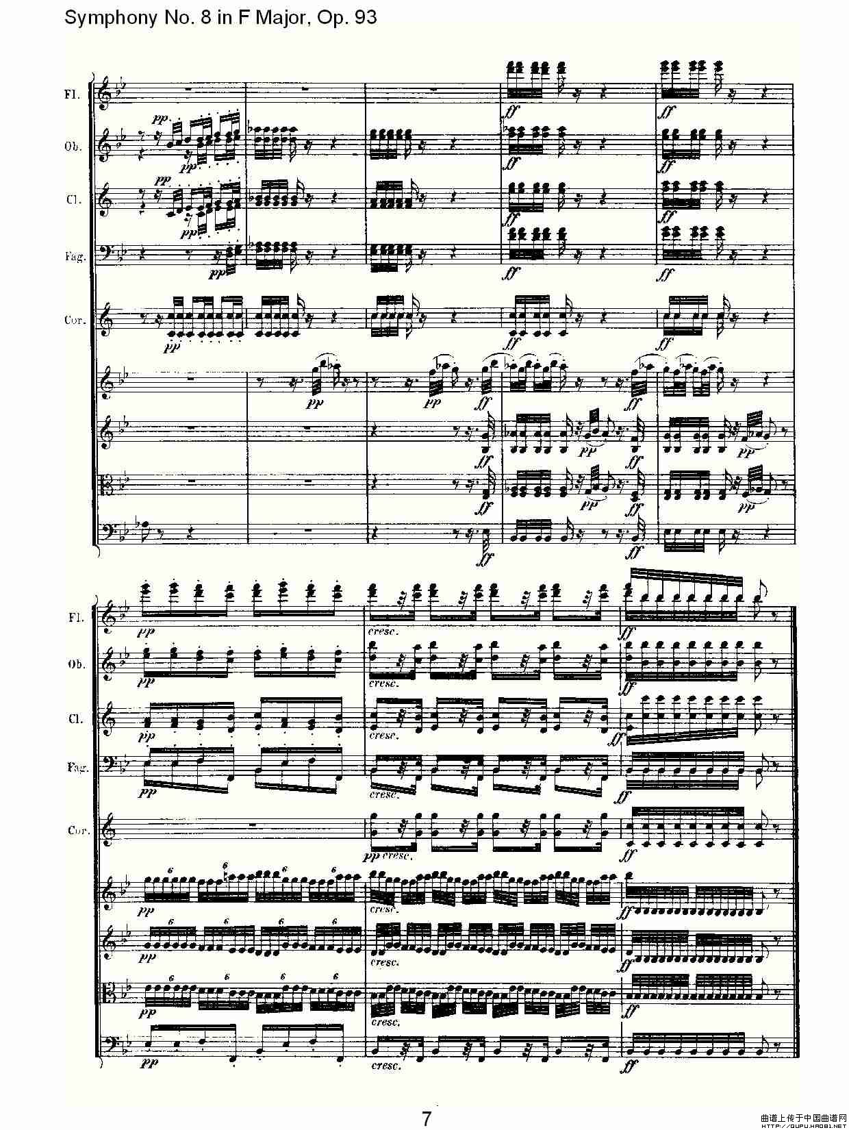 F大调第八交响曲 Op.93第二乐章相关五线谱