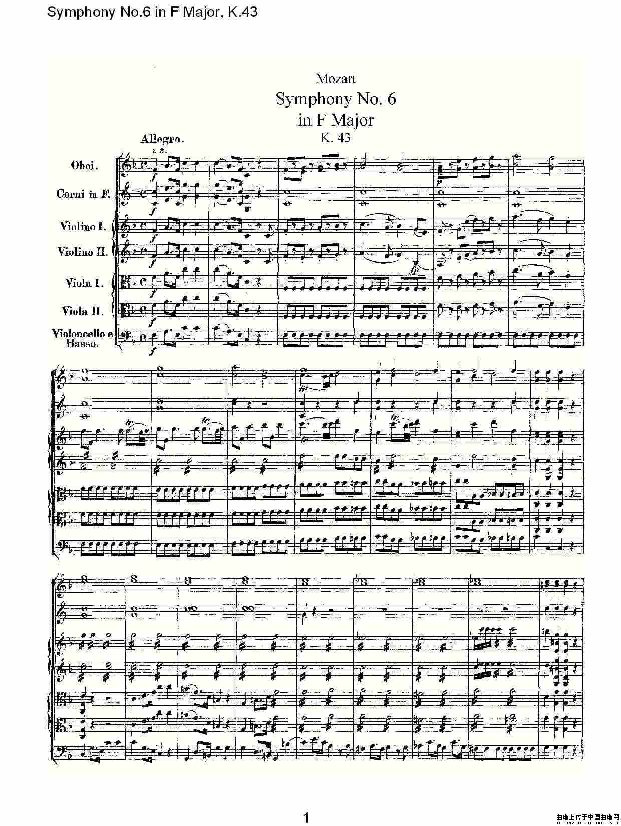 Symphony No.6 in F Major, K.43(F大调第六交响曲K.43)相关五线谱