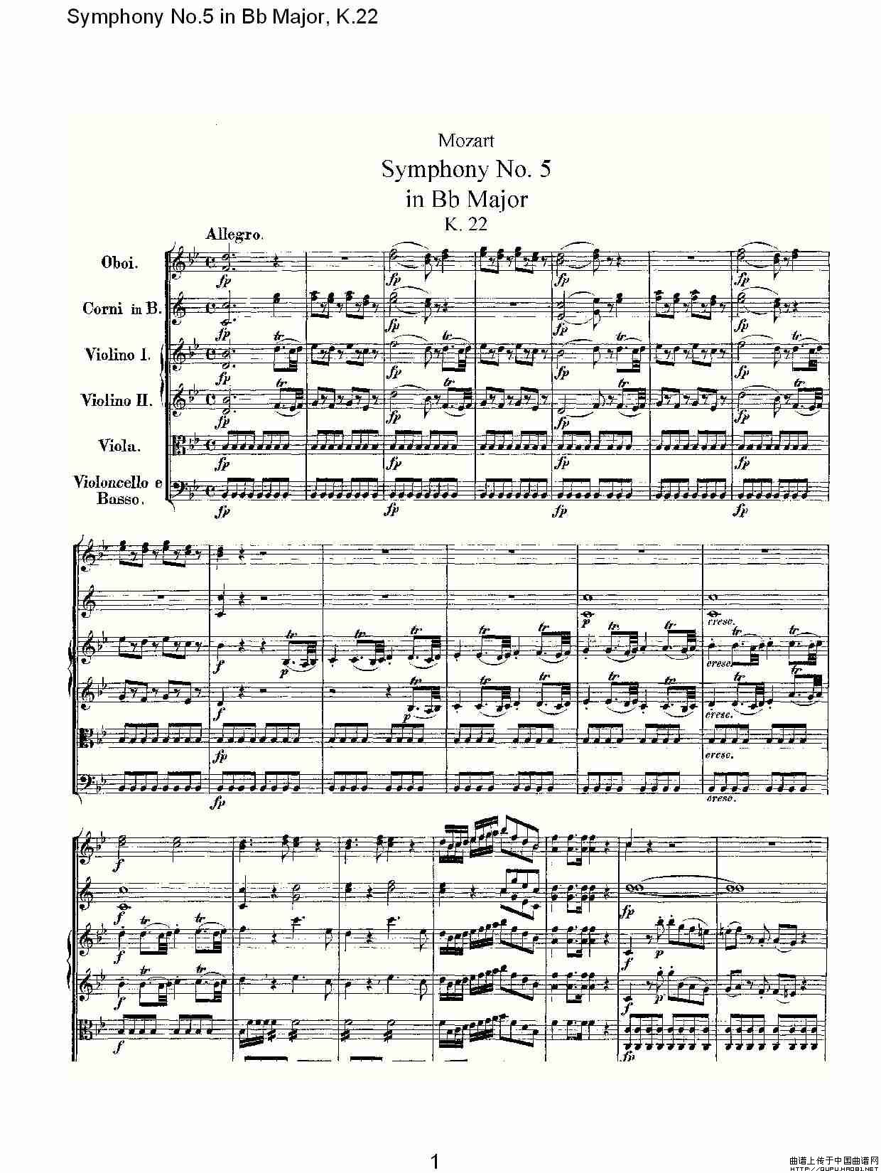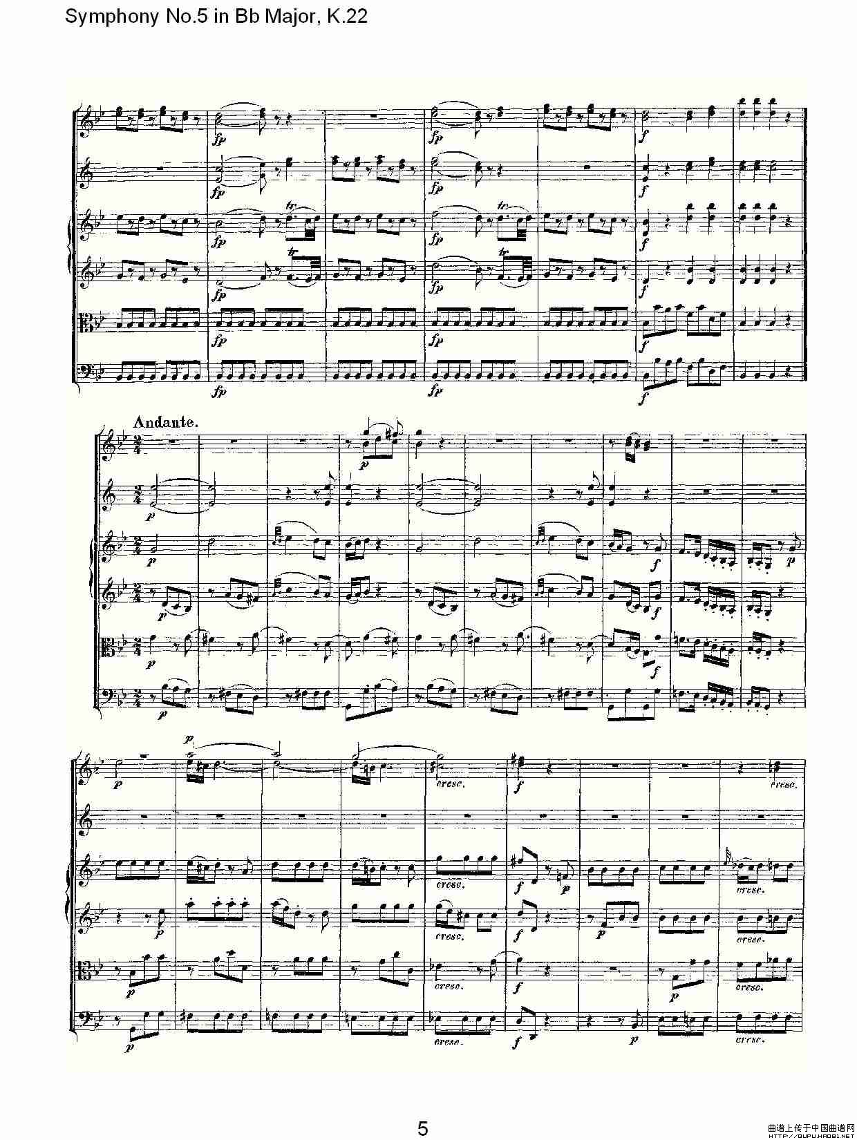 Symphony No.5 in Bb Major, K.22(Bb大调第五交响曲K.22)相关五线谱