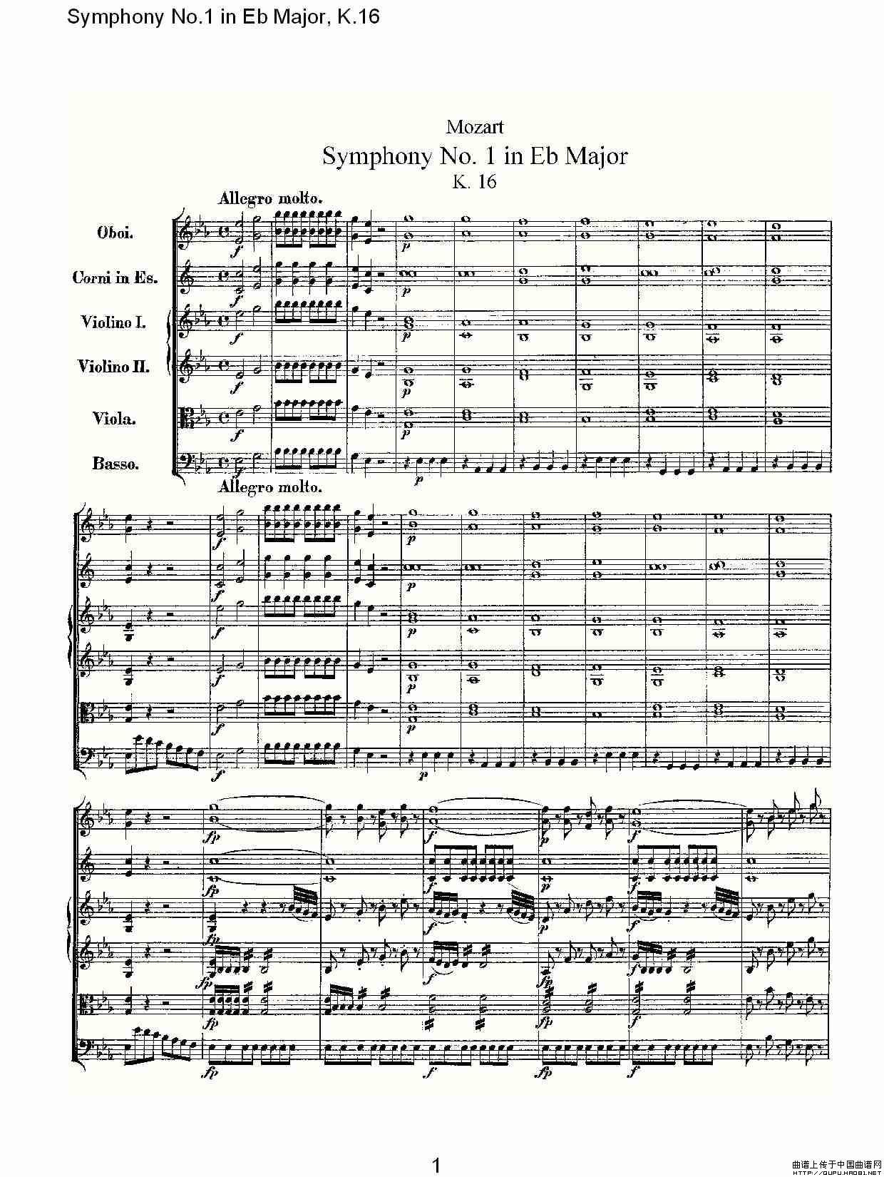 Symphony No.1 in Eb Major,K.16(Eb大调第一交响曲K.16)相关五线谱